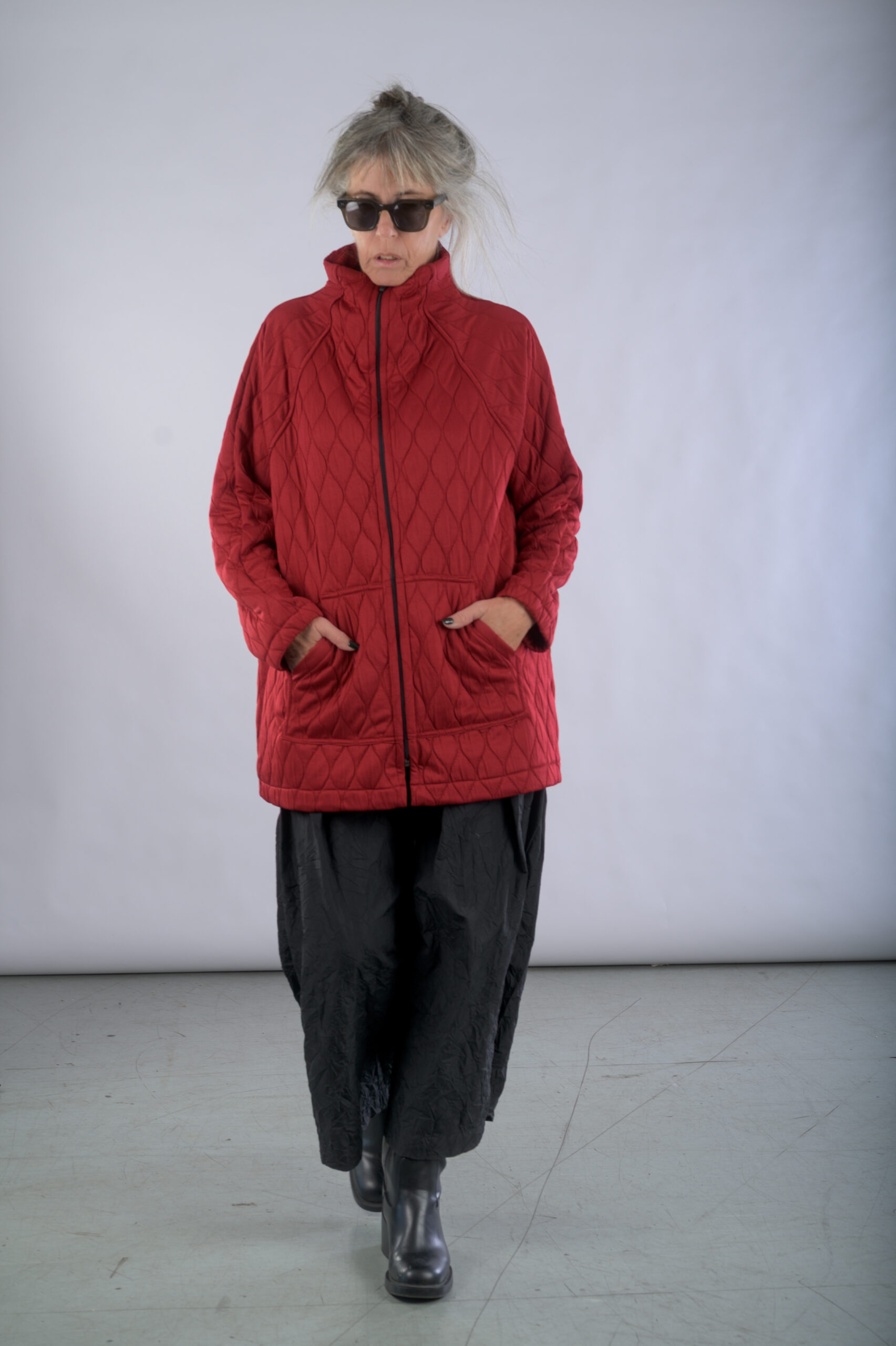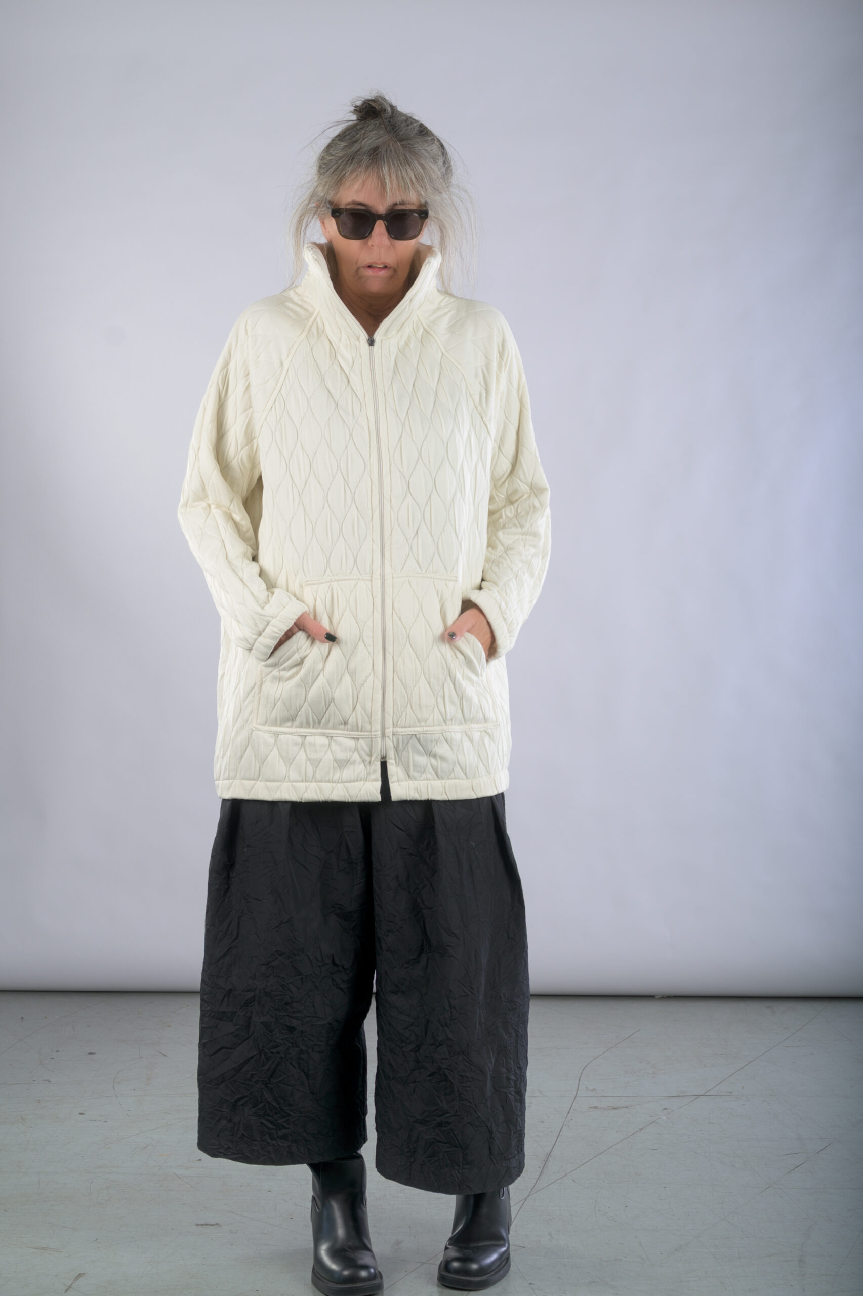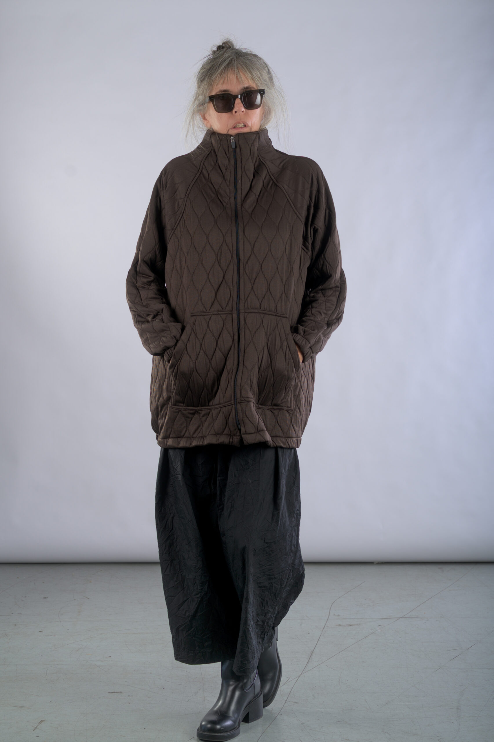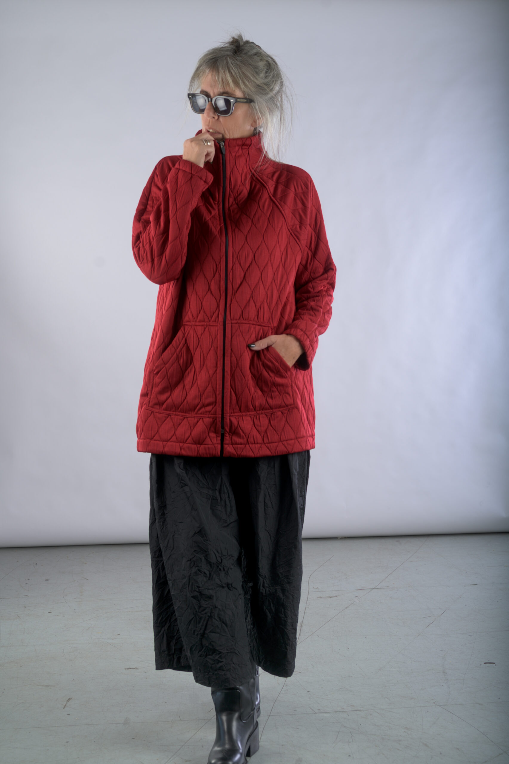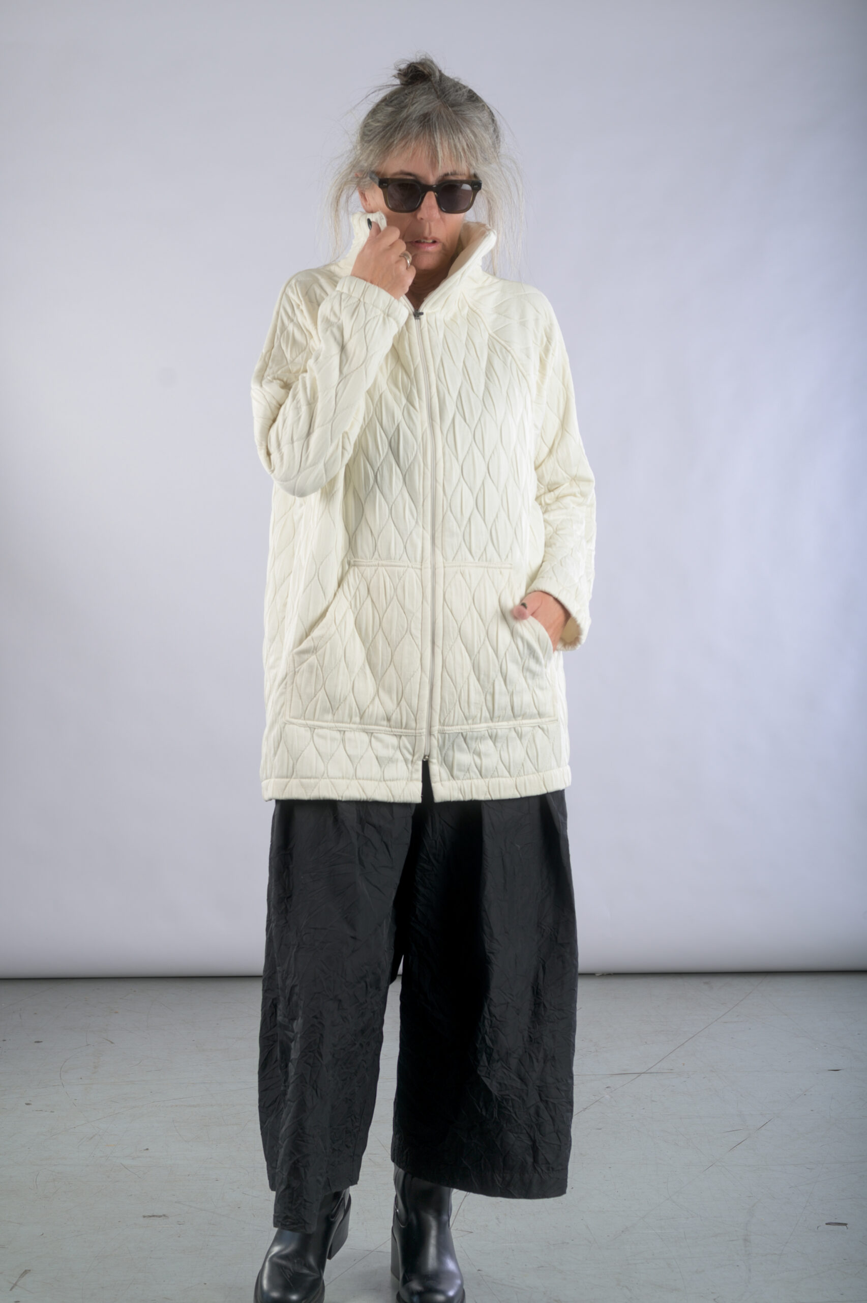 ג'קט מבד קווילט, עם צווארון מוגבה וסגירת רוכסן