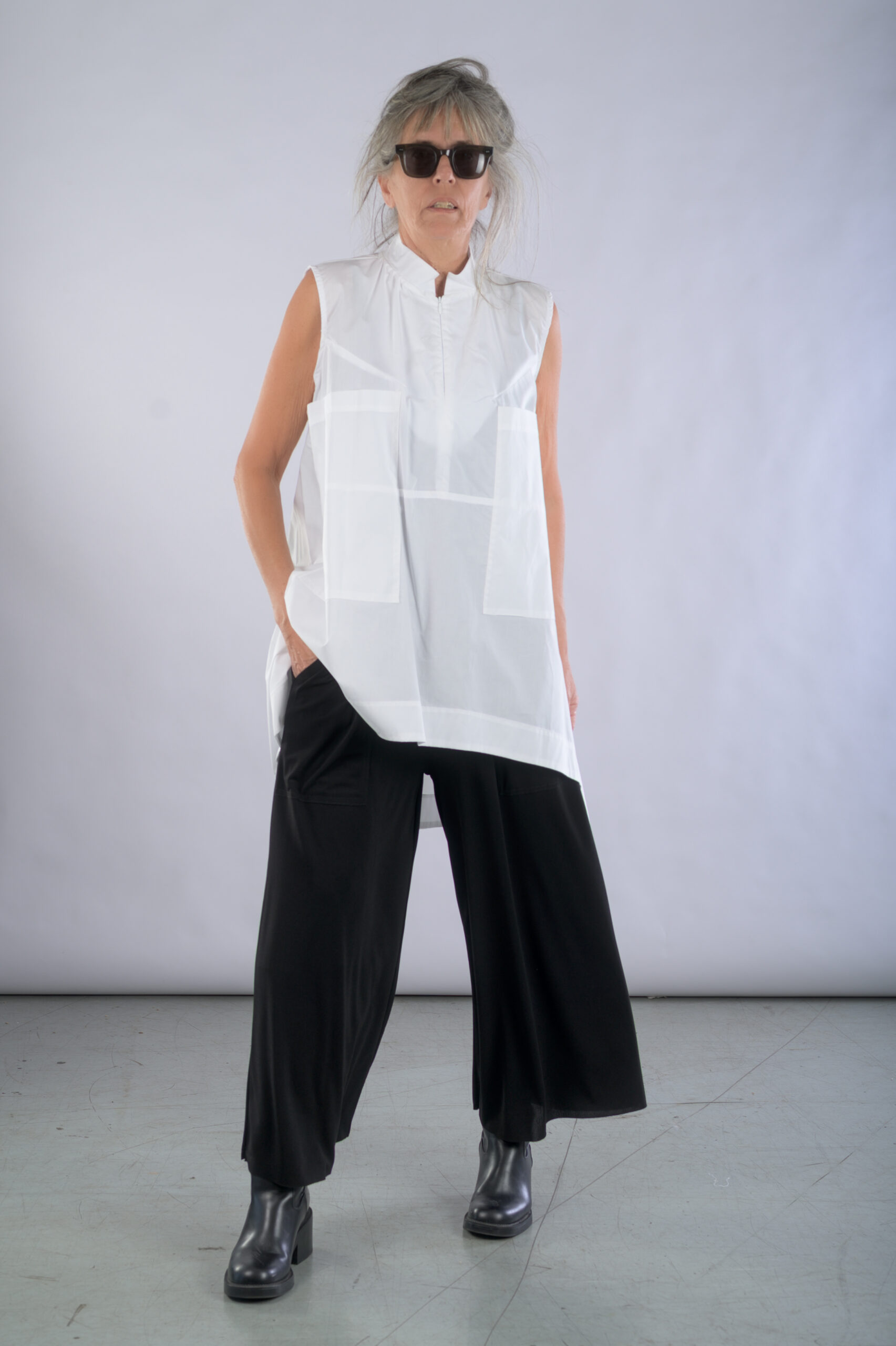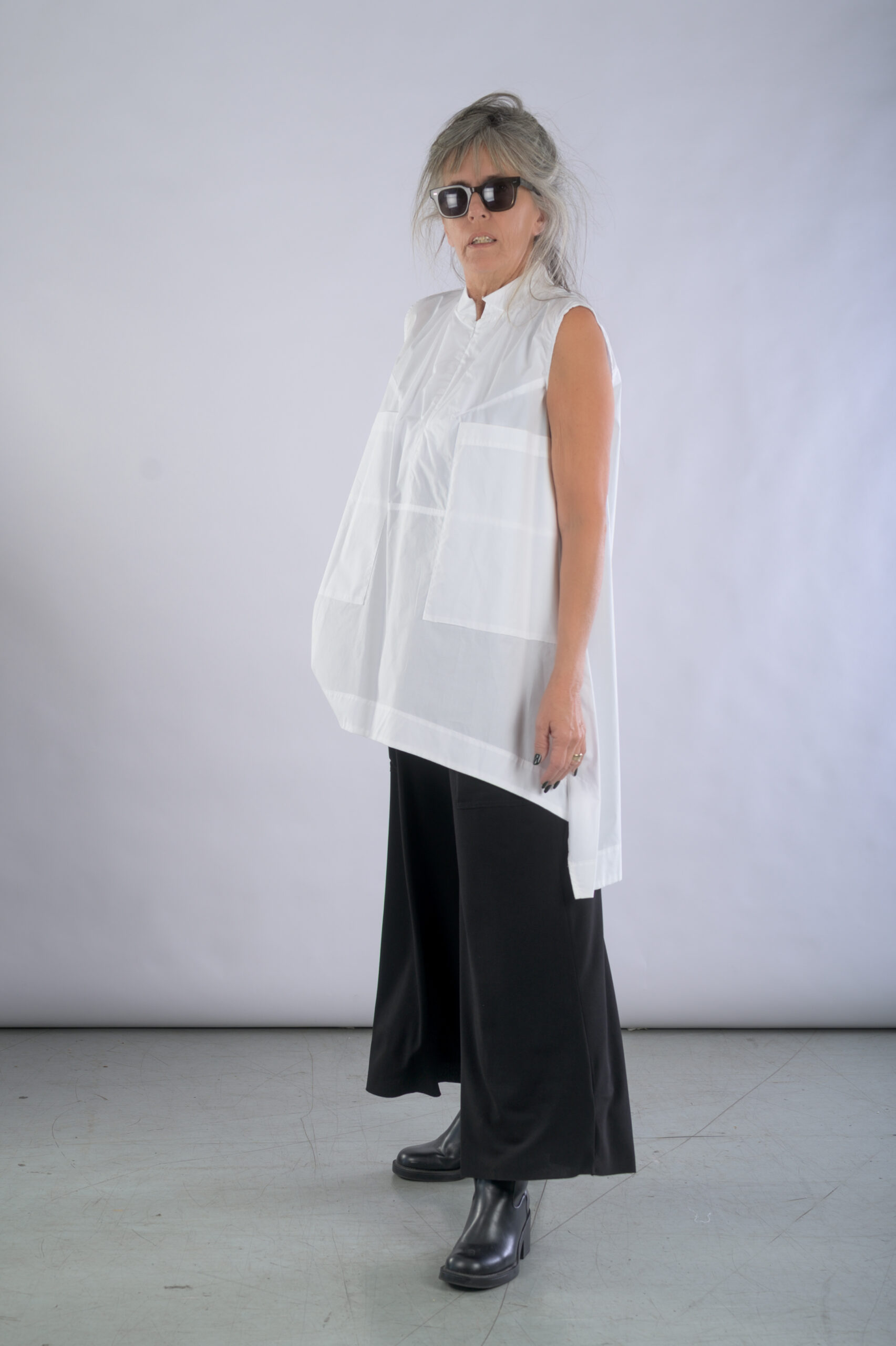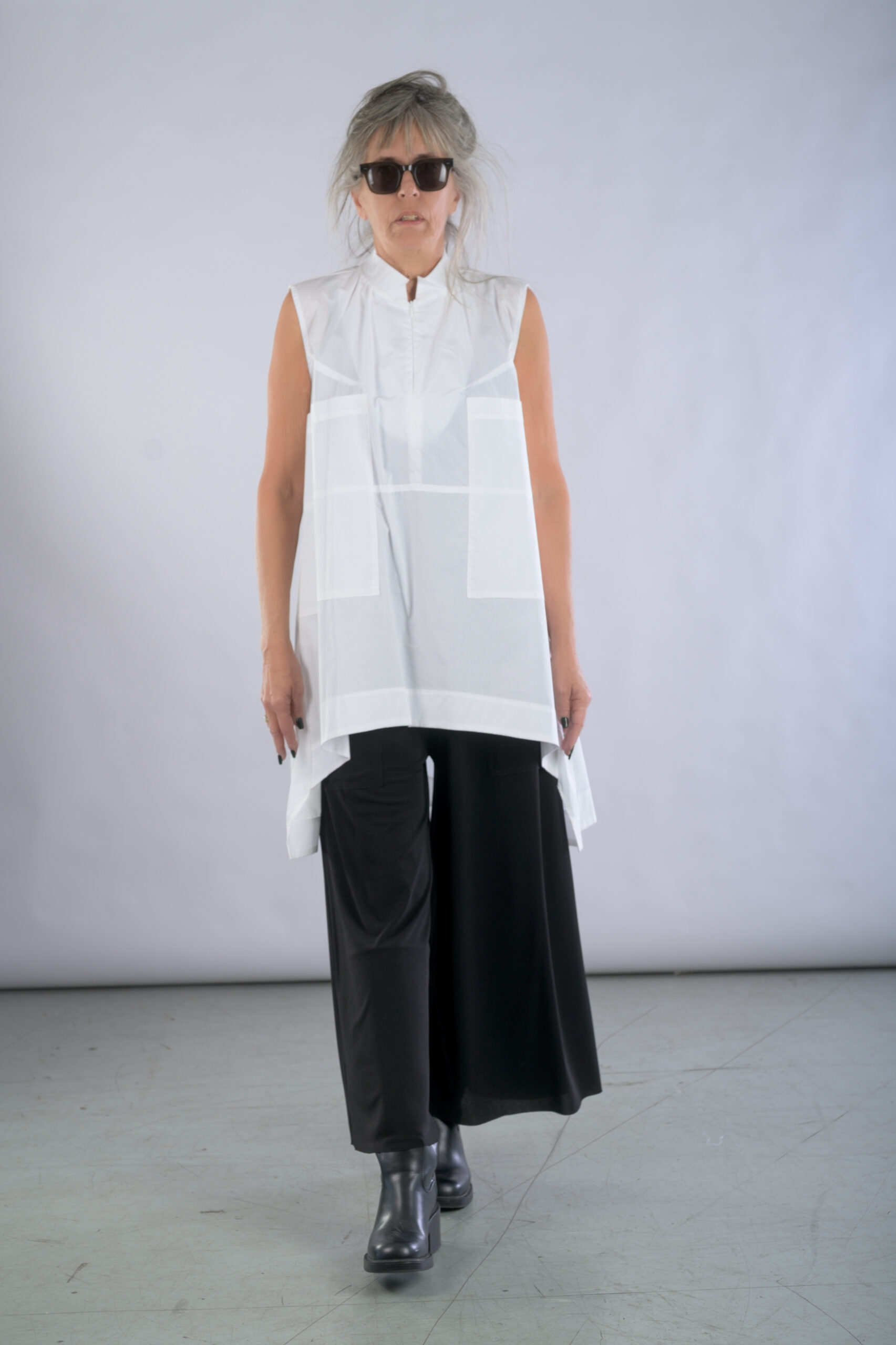 טוניקת כותנה ללא שרוולים, עם גב מאורך, נרכסת ברוכסן בחלקה האחורי