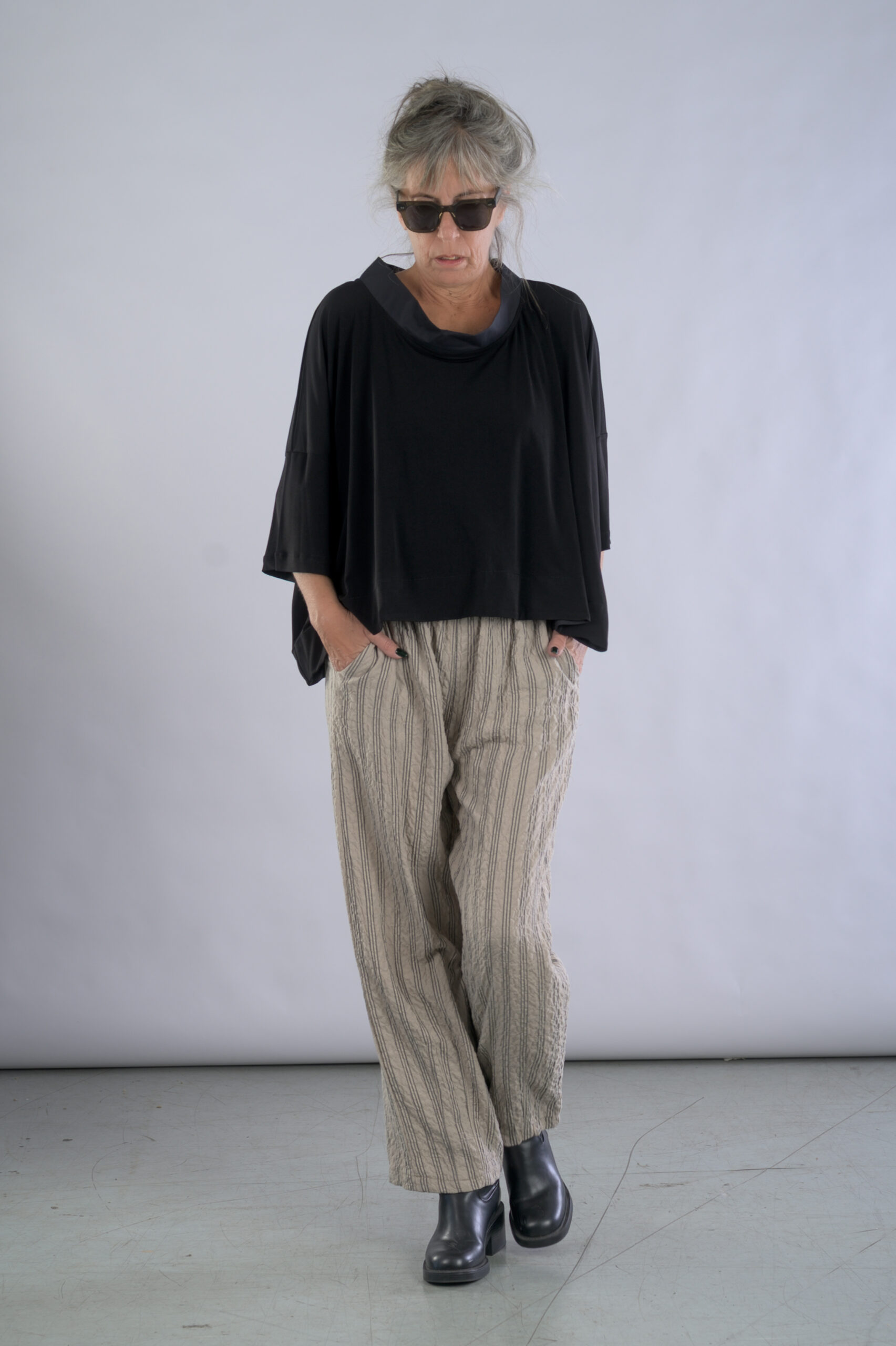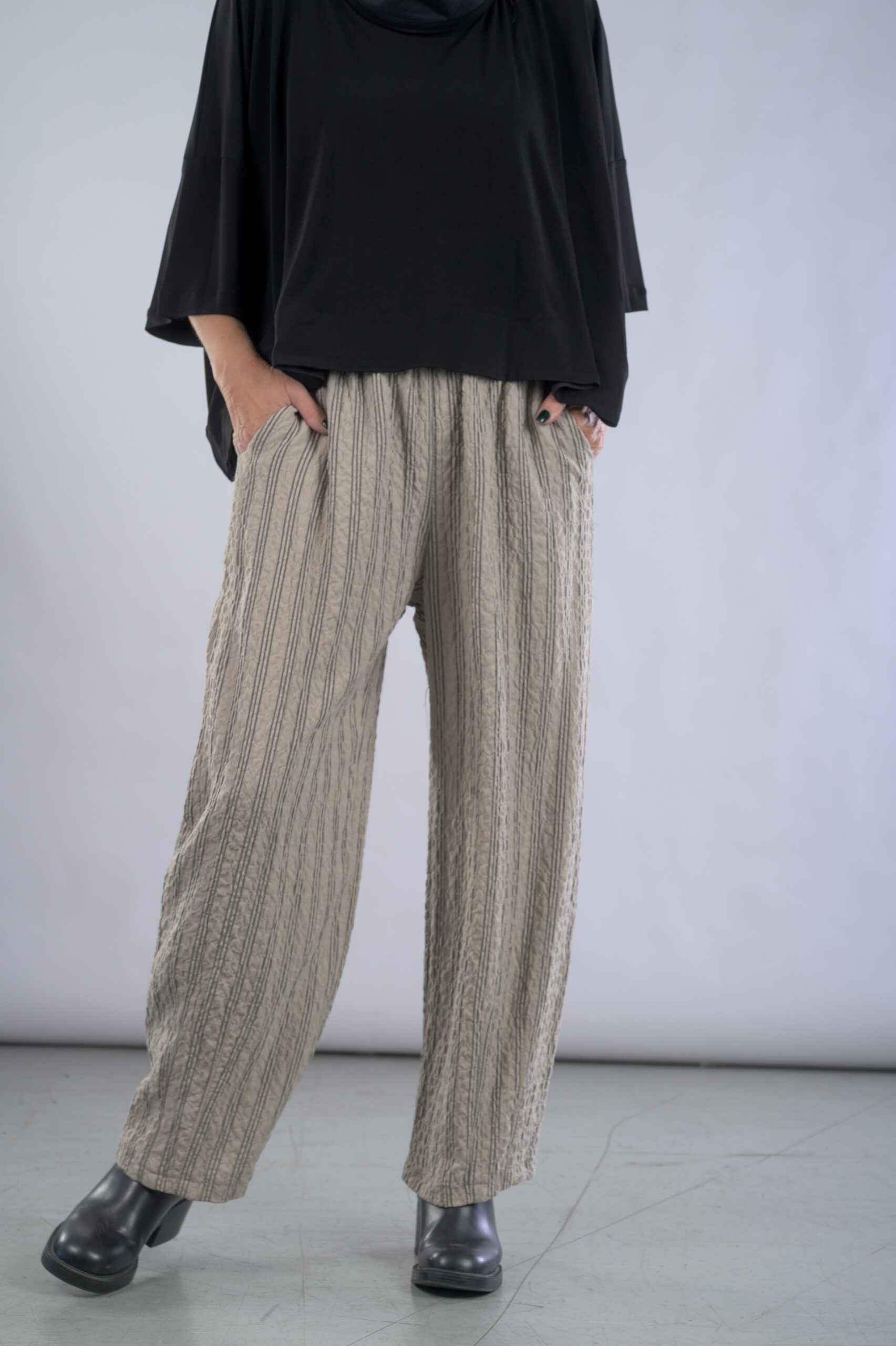 מכנסים מבד וילינג פסים, עם גומי במותן