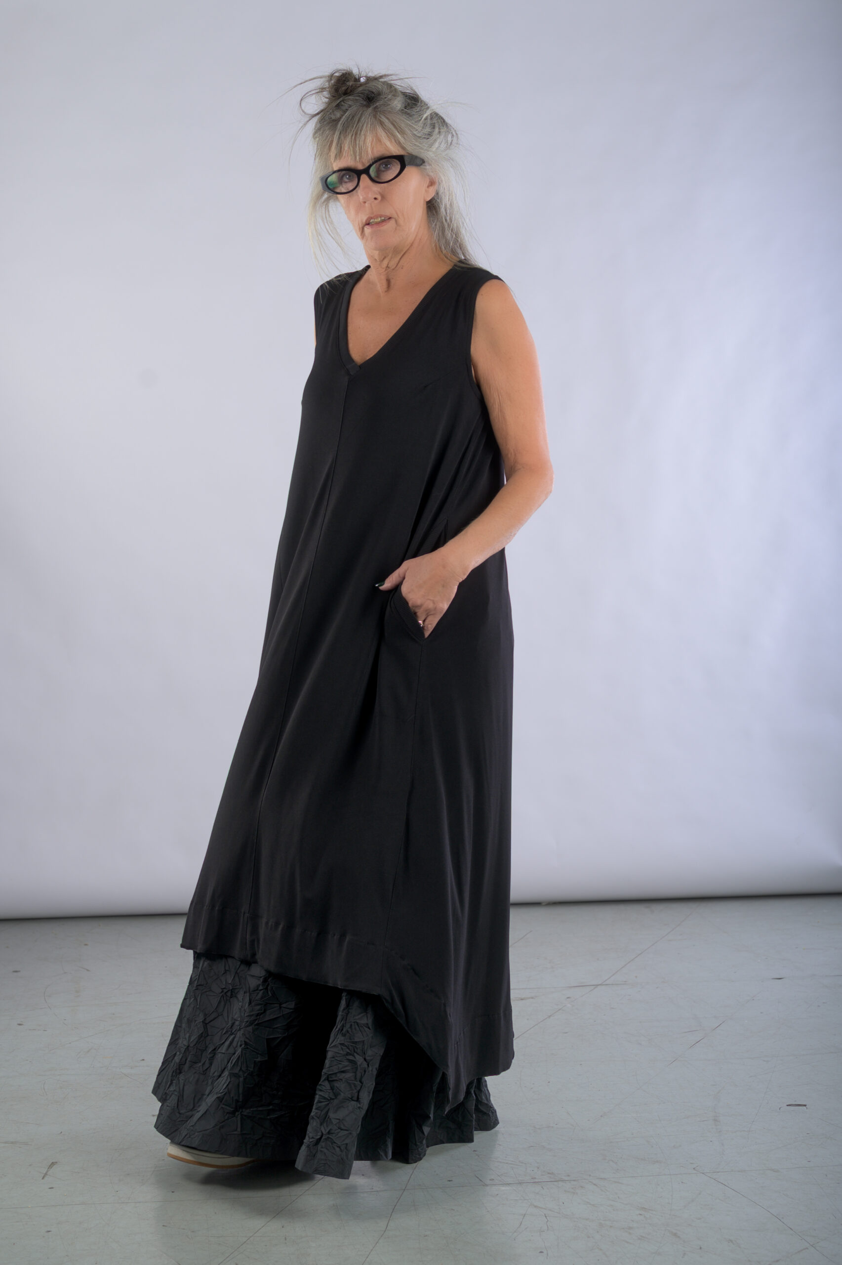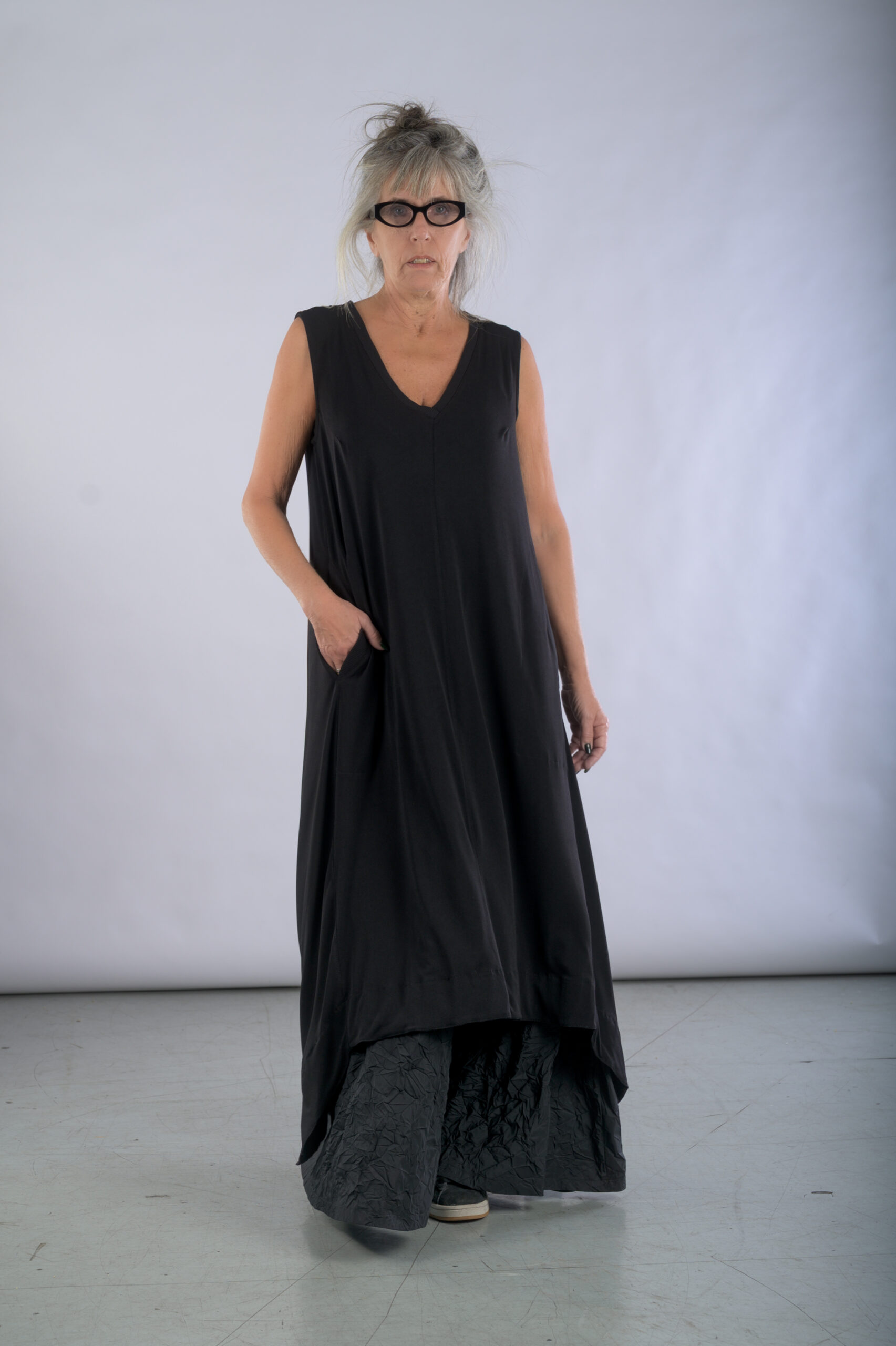 שמלה מלאת נוכחות, באורך מקסי, בגזרה מחמיאה המרחפת על הגוף