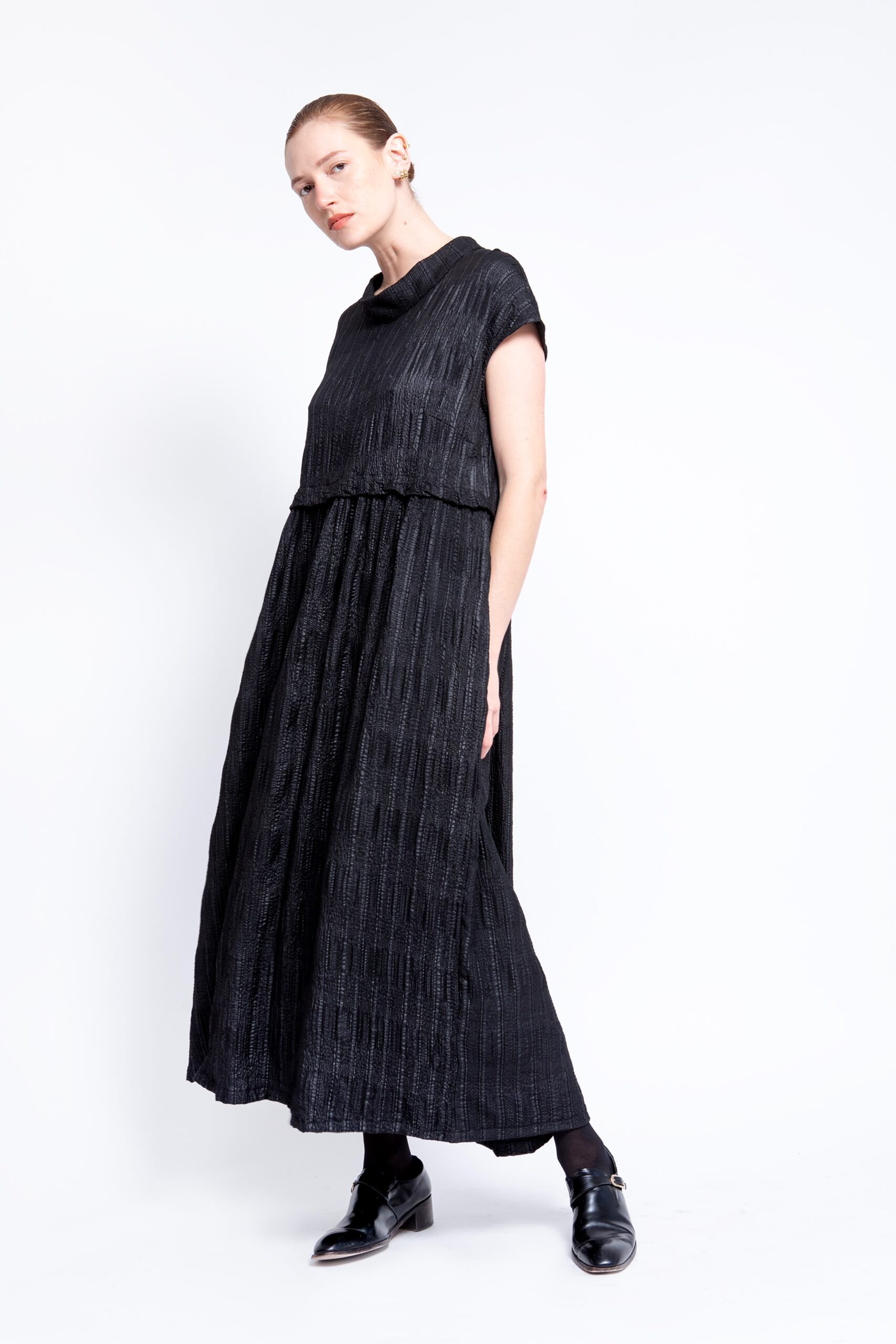 שמלה באורך מקסי, מבד נשפך עם טקסטורה בציפוי מבריק