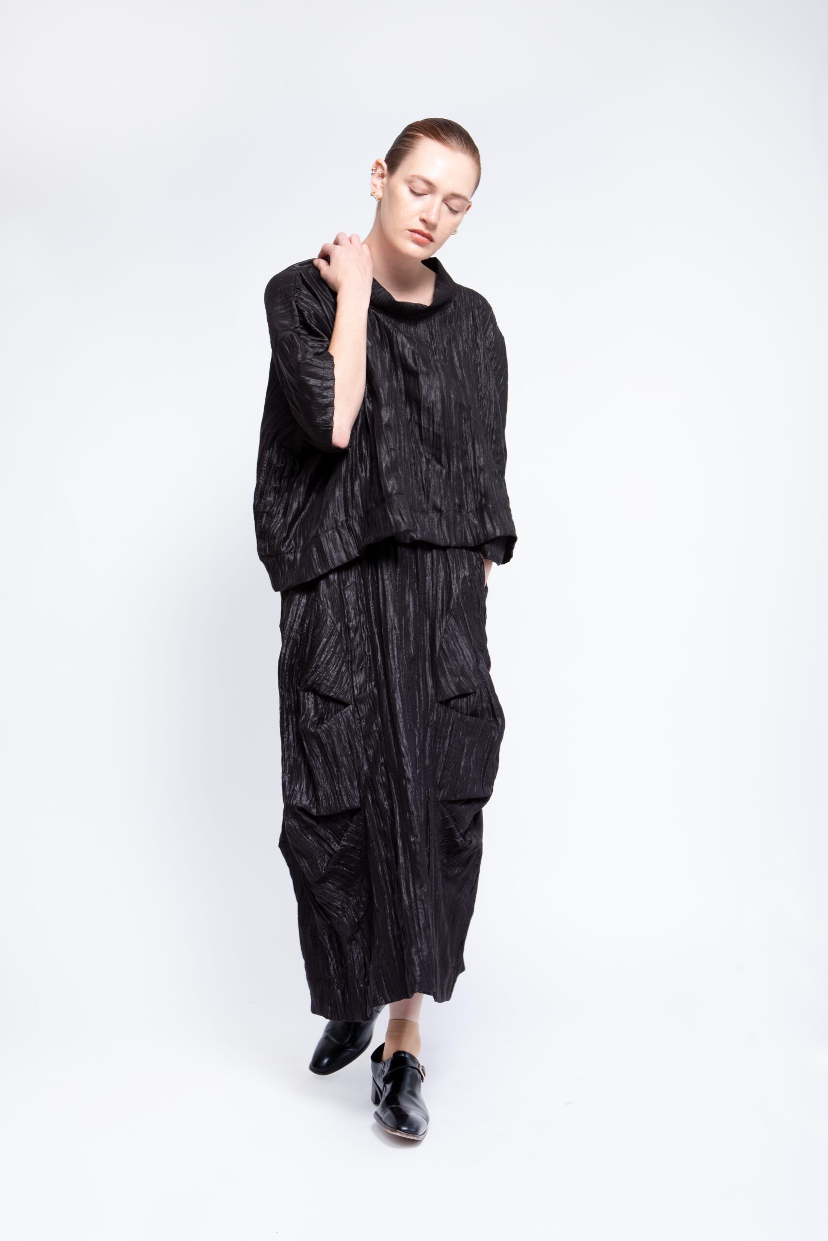 חצאית מלאת נוכחות באורך מקסי, עם שני ככיסים פתוחים ונשפכים