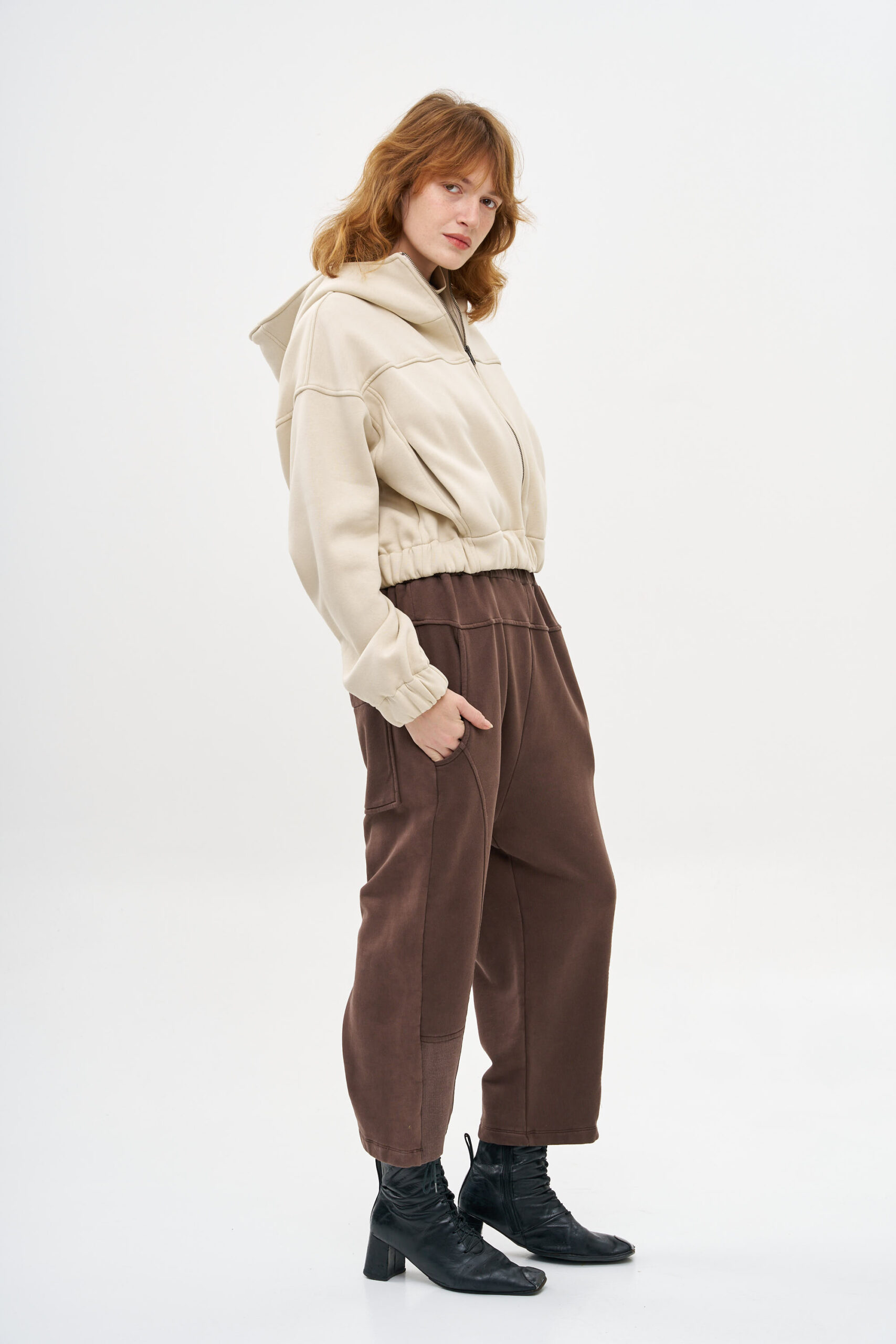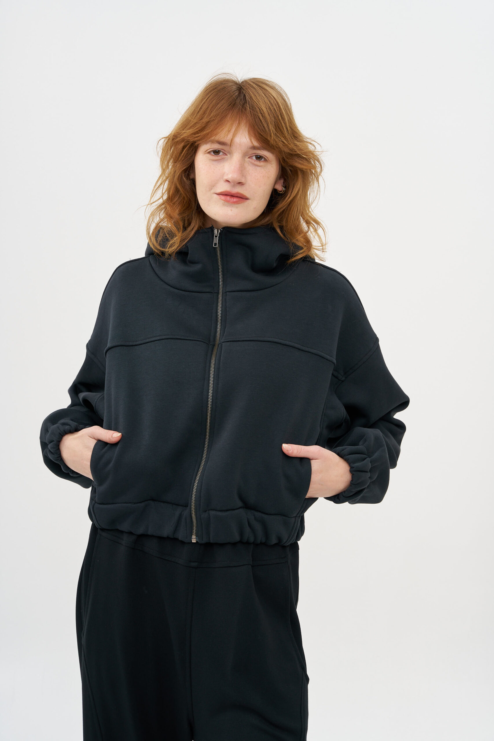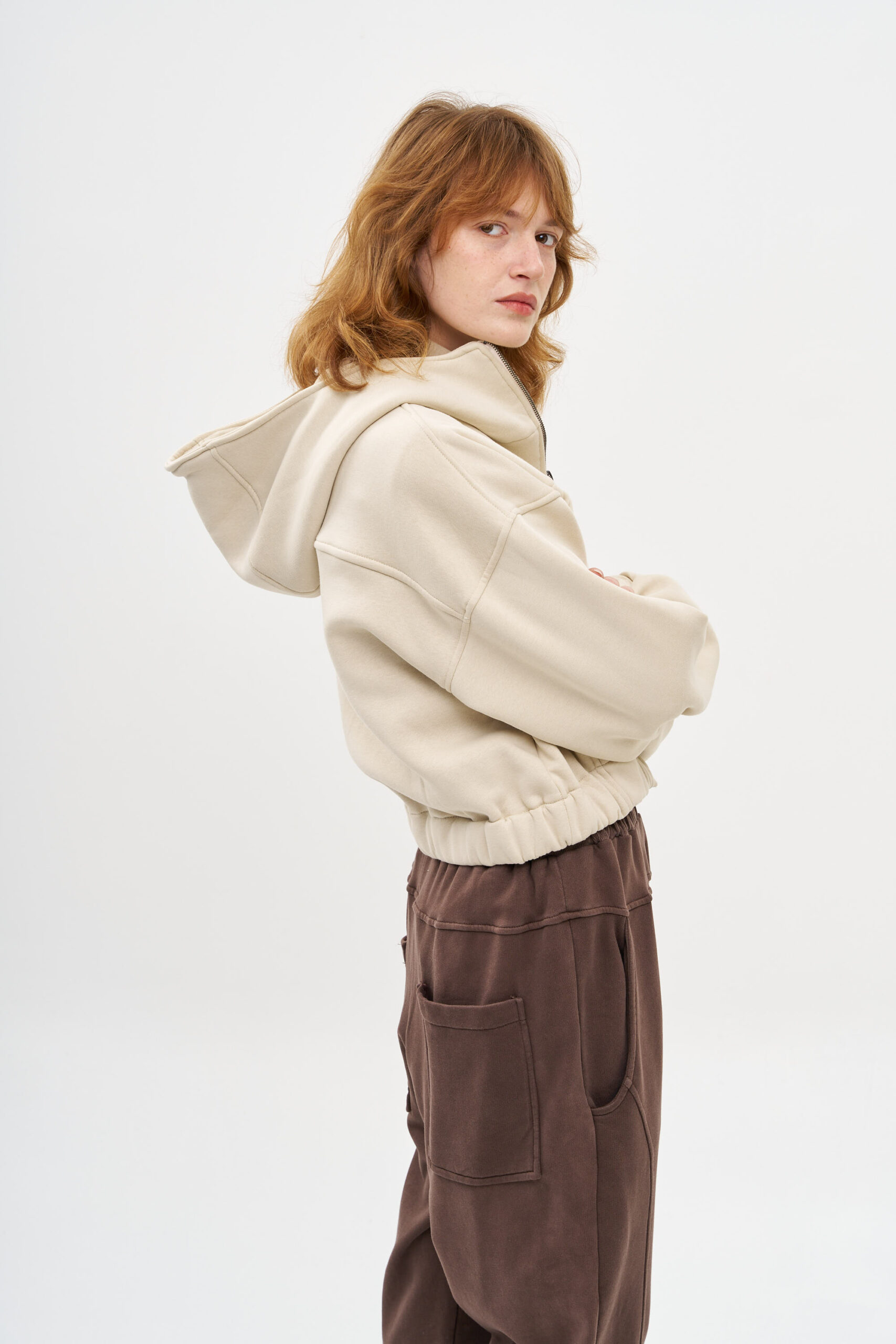 ג'קט באורך מותן, עם תפר רוחבי מעל קו החזה, המוסיף שיק ייחודי