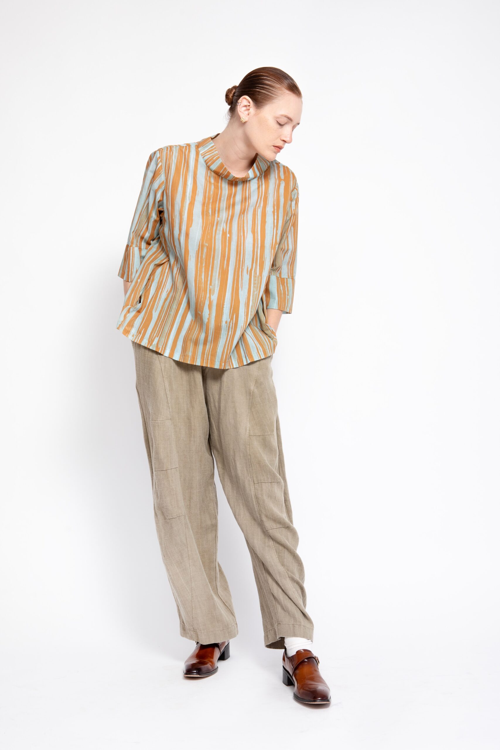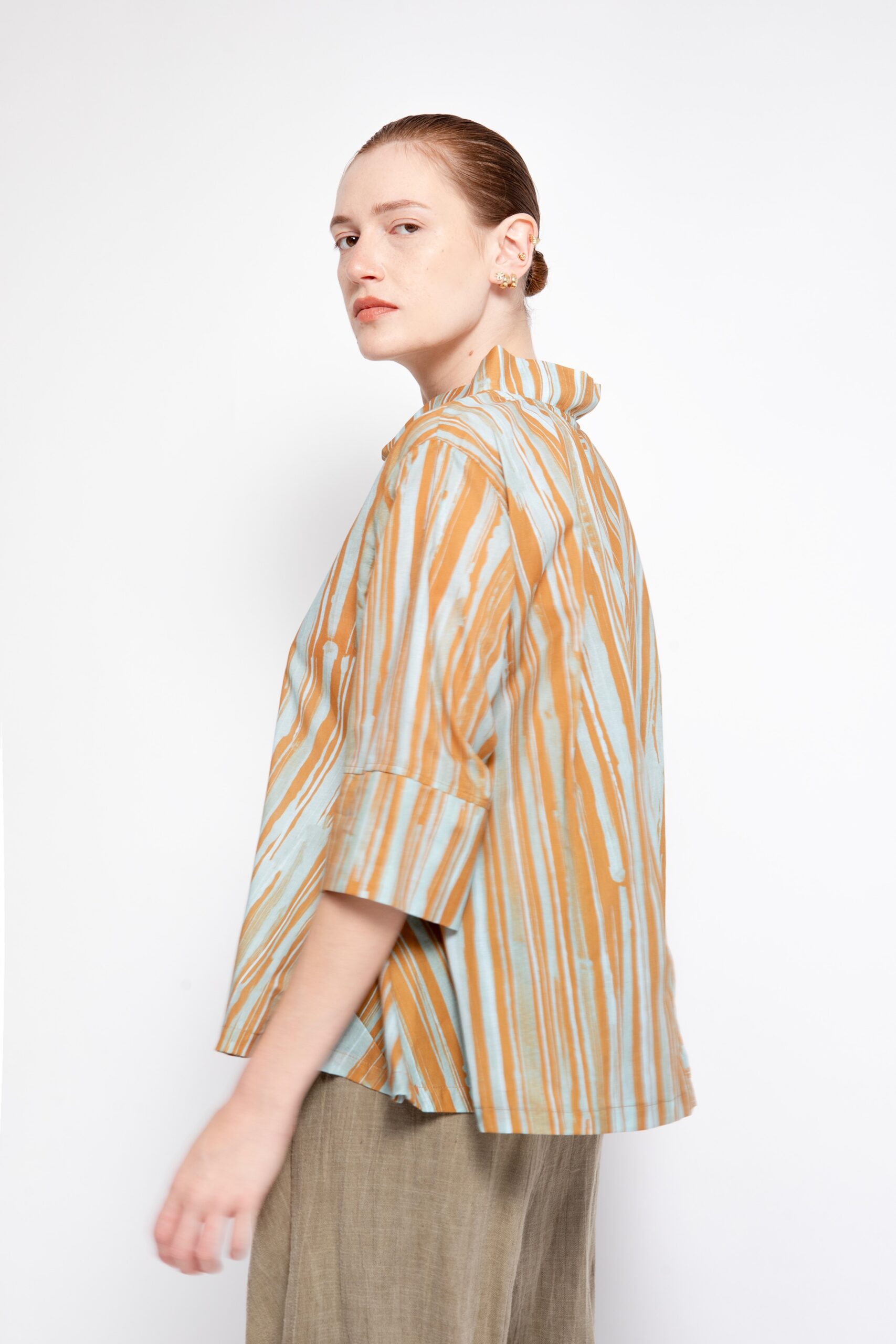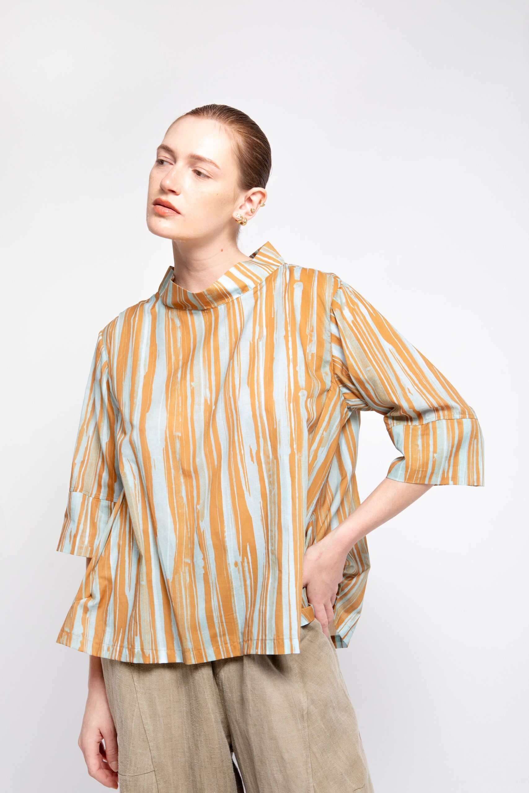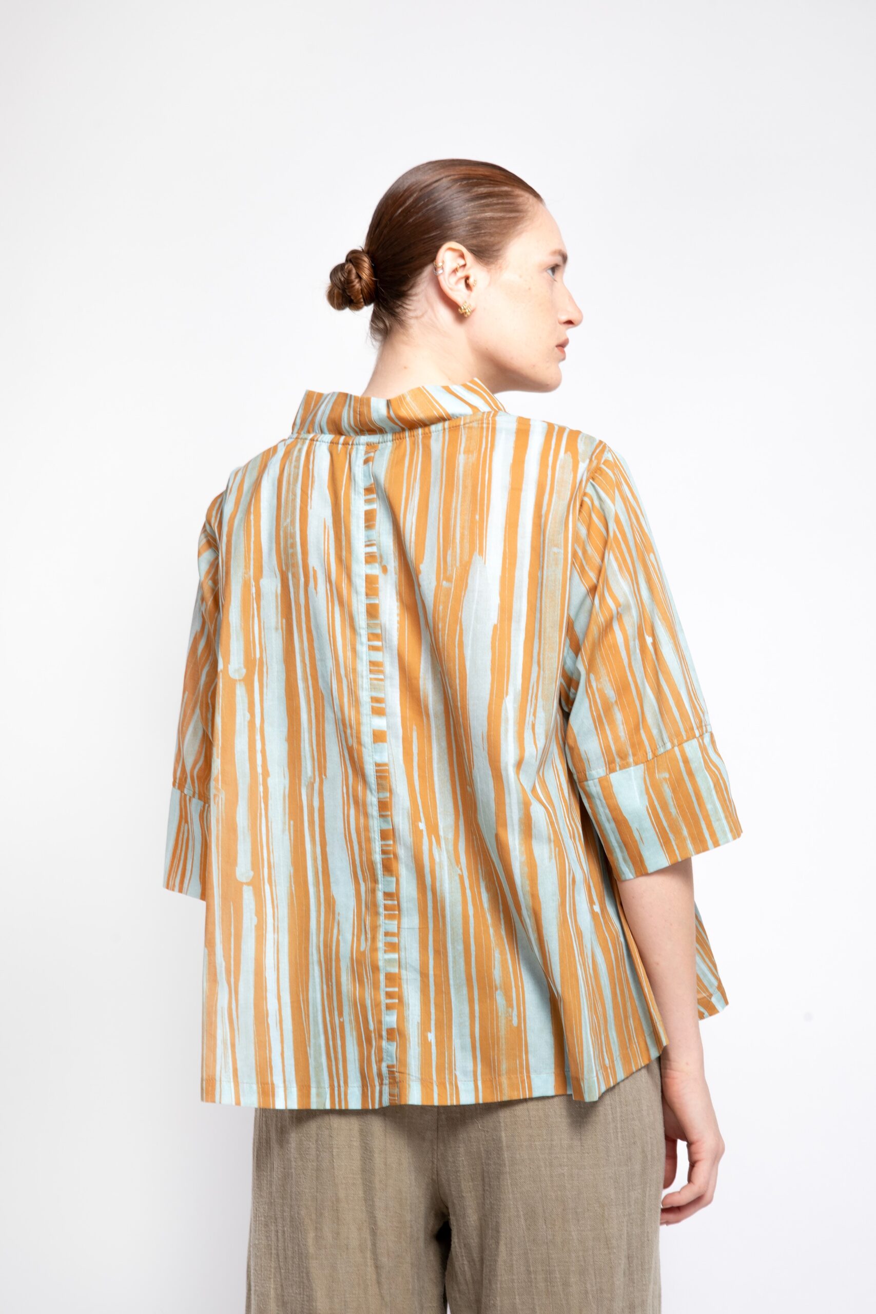 חולצה מבד כותנה מודפס, בפסי תבלינים