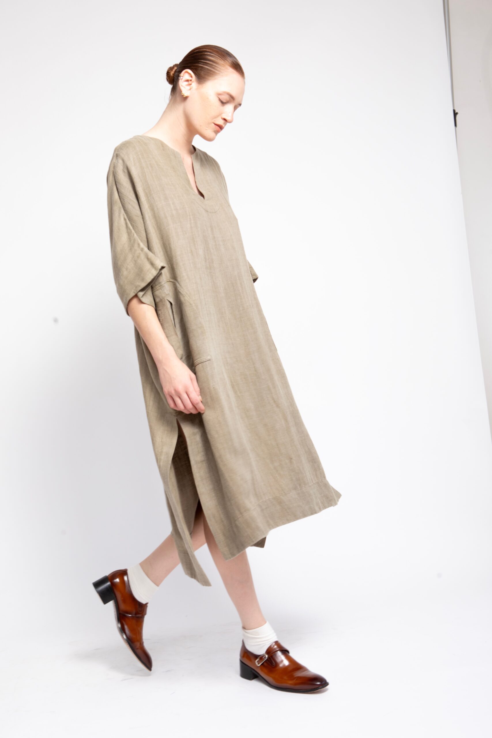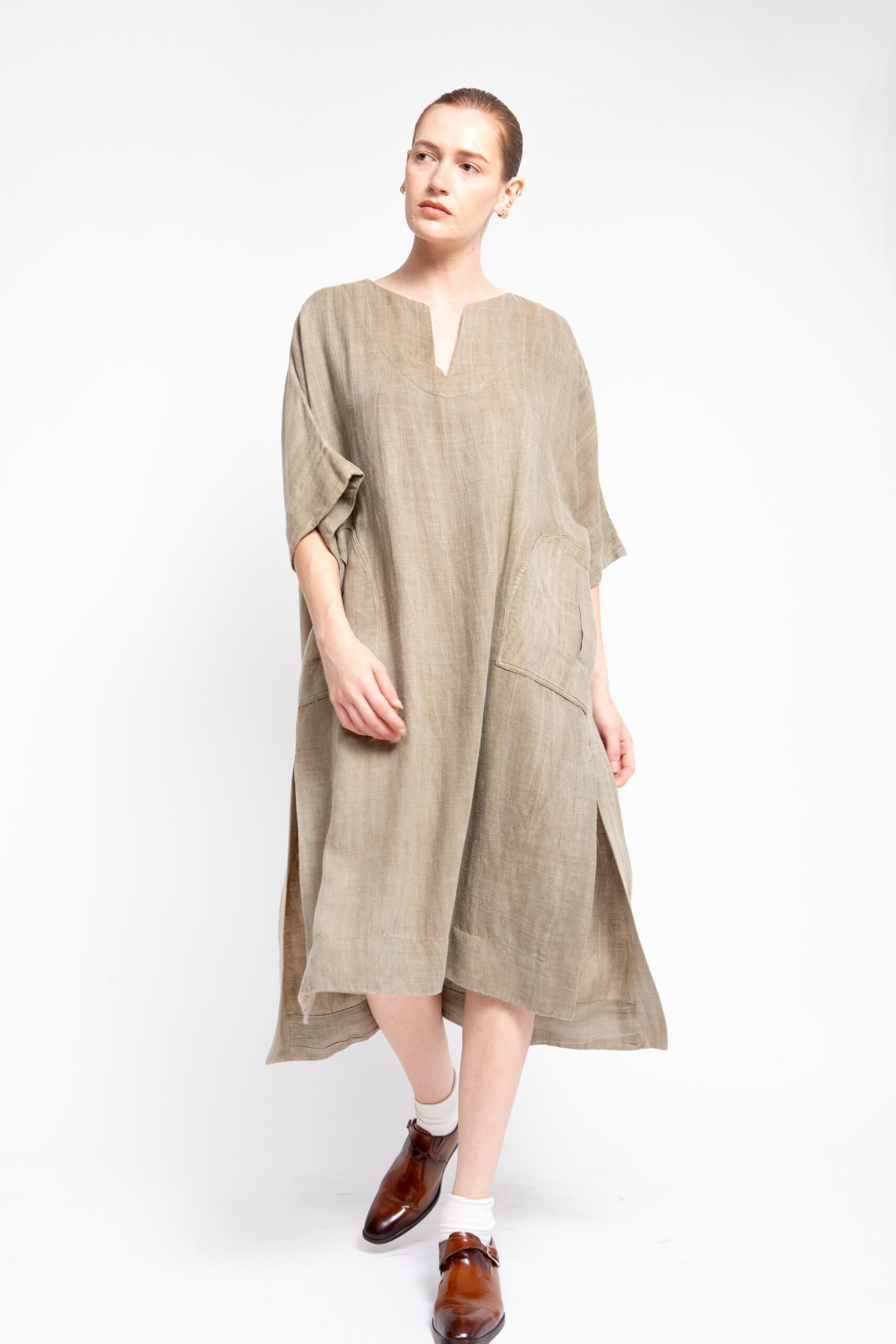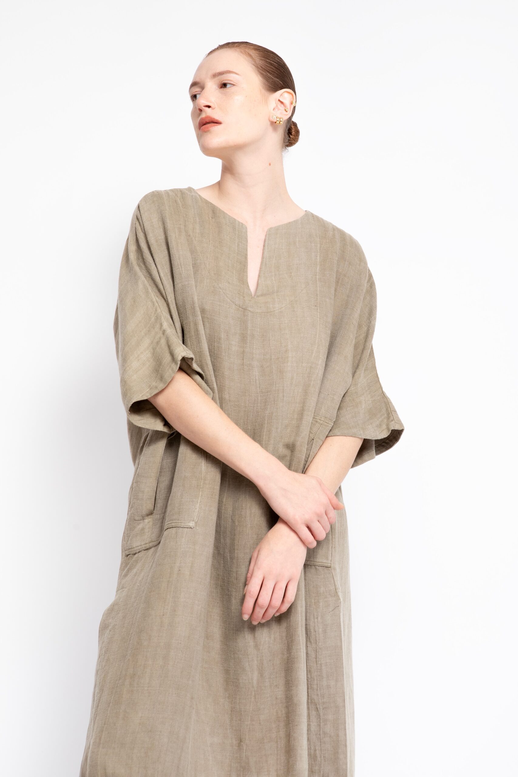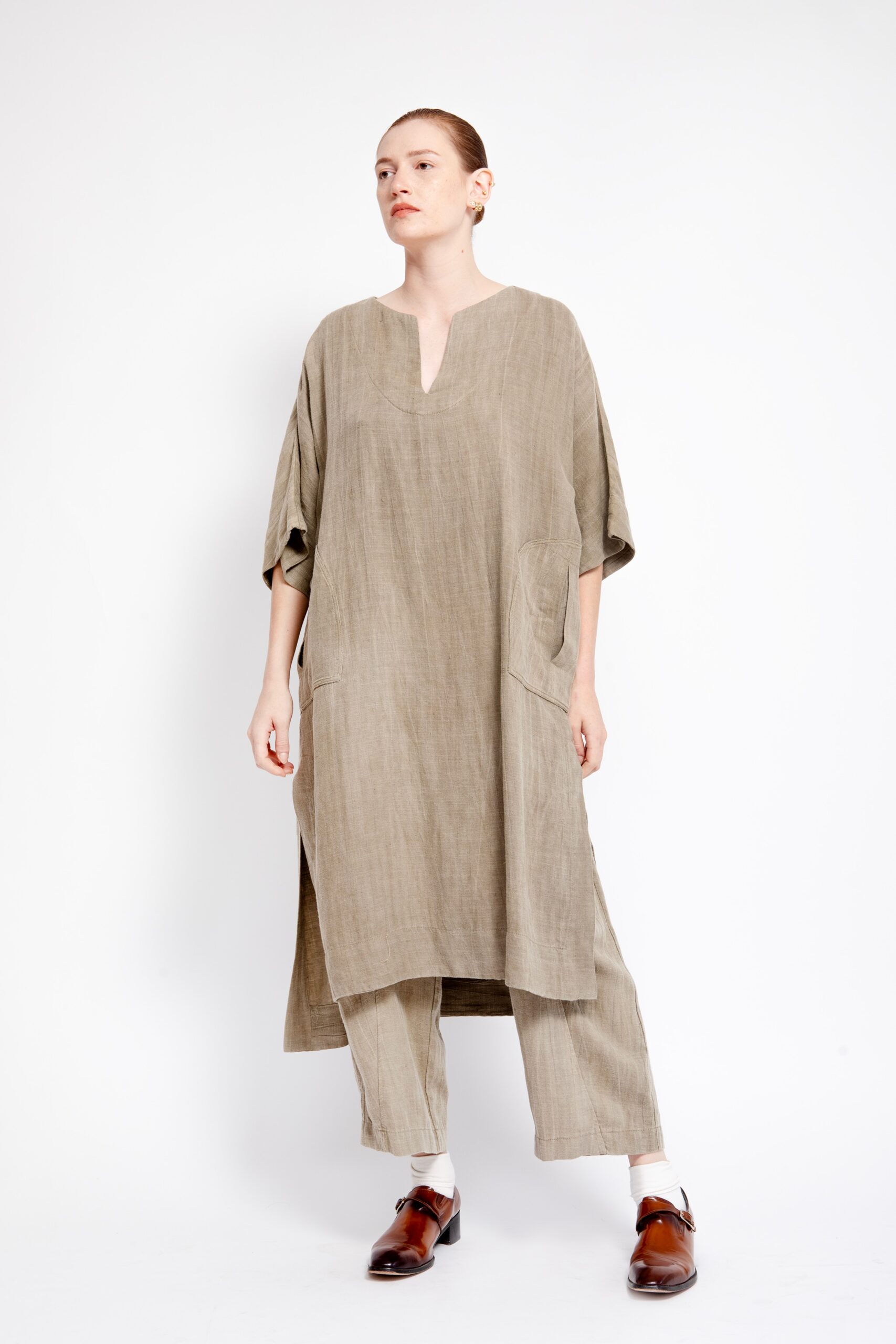 טוניקת פשתן ויסקוזה רחוץ, עם מפתח V צר