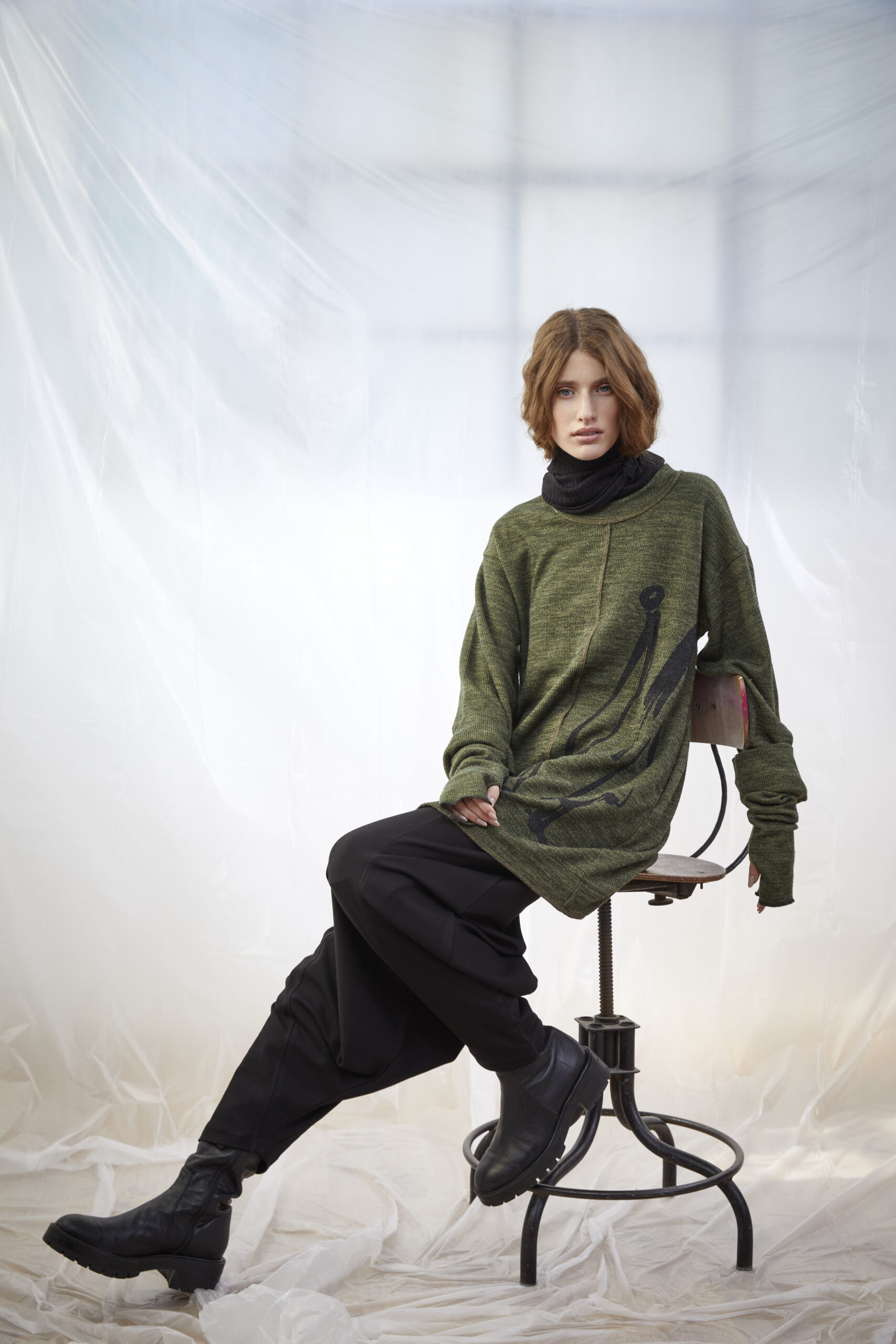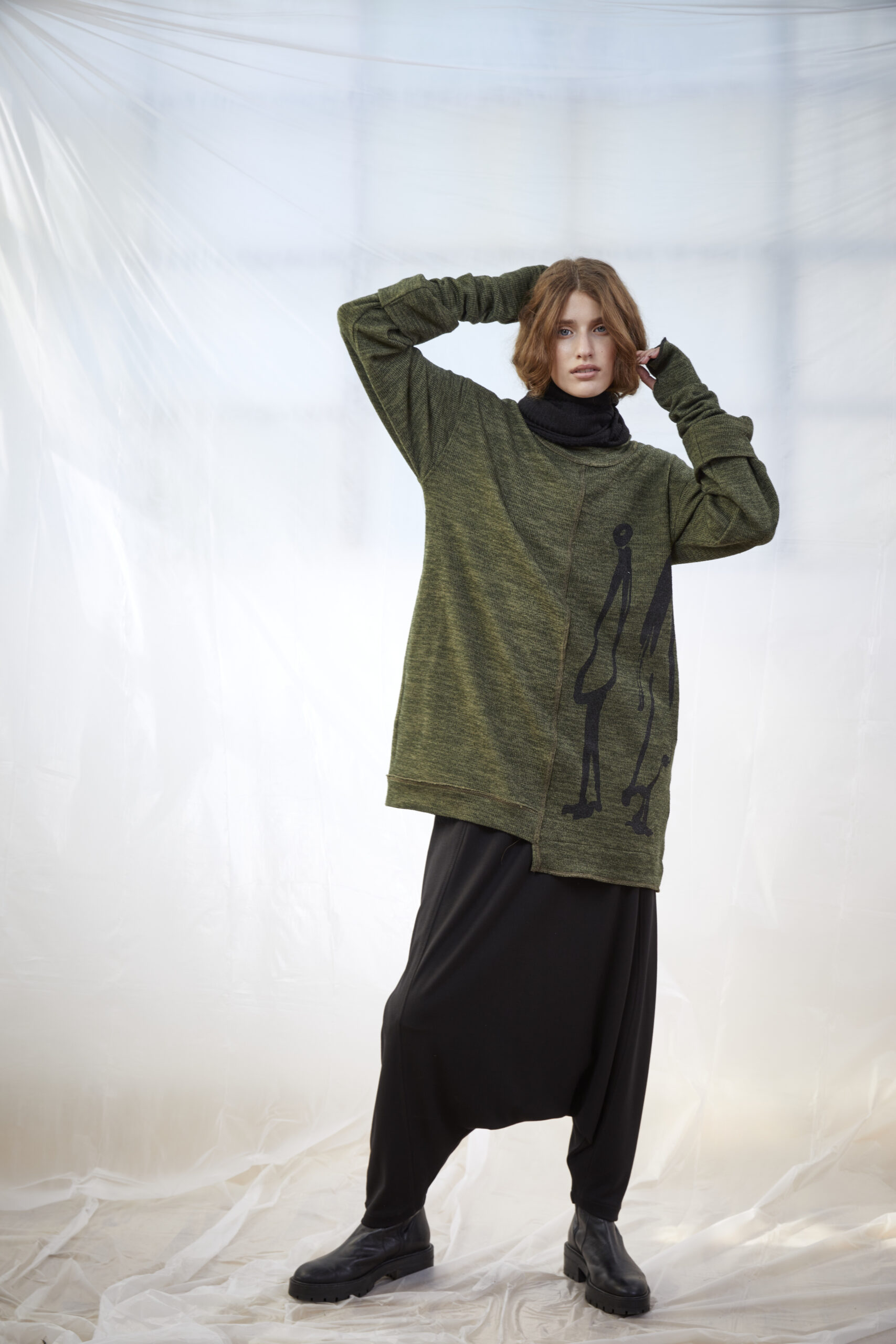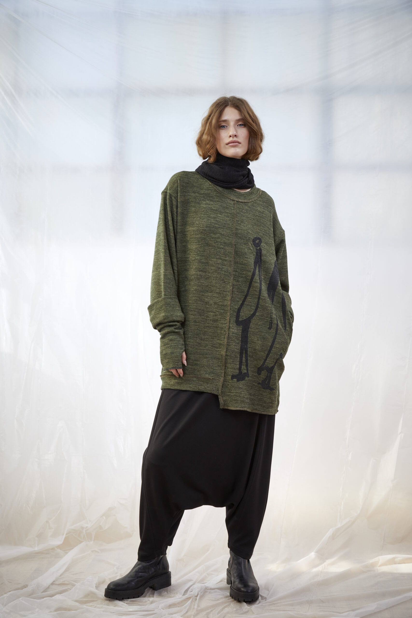 טוניקת סריג באורכים שונים, בשילוב הדפס פרצוף בחלקה הקדמי