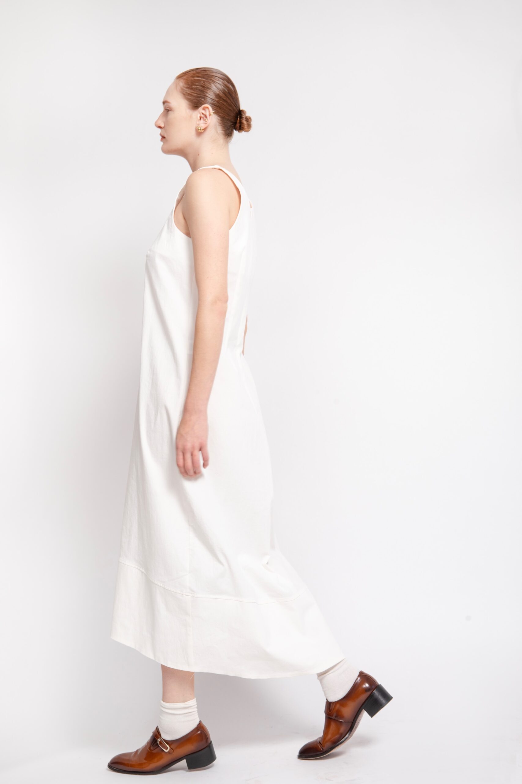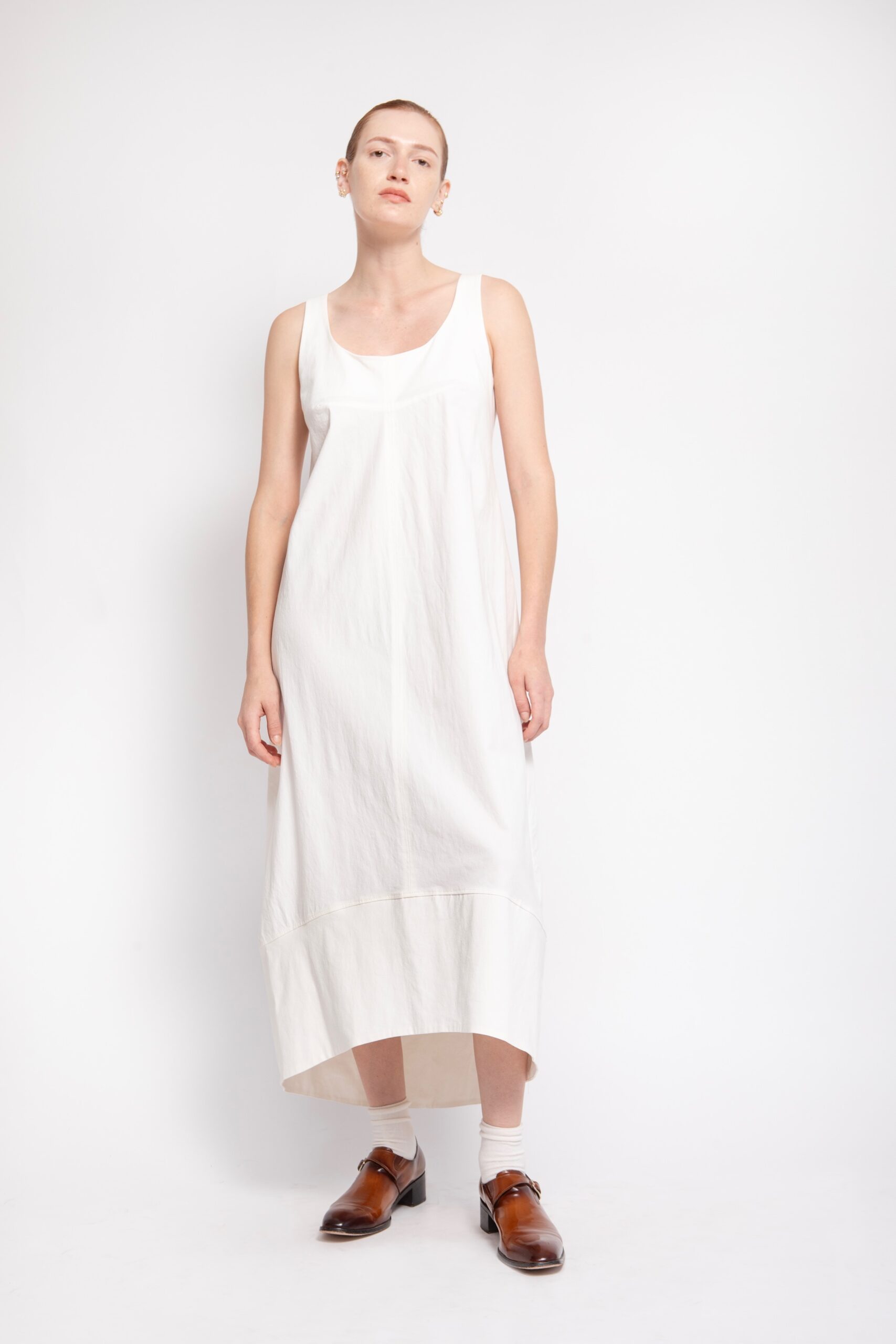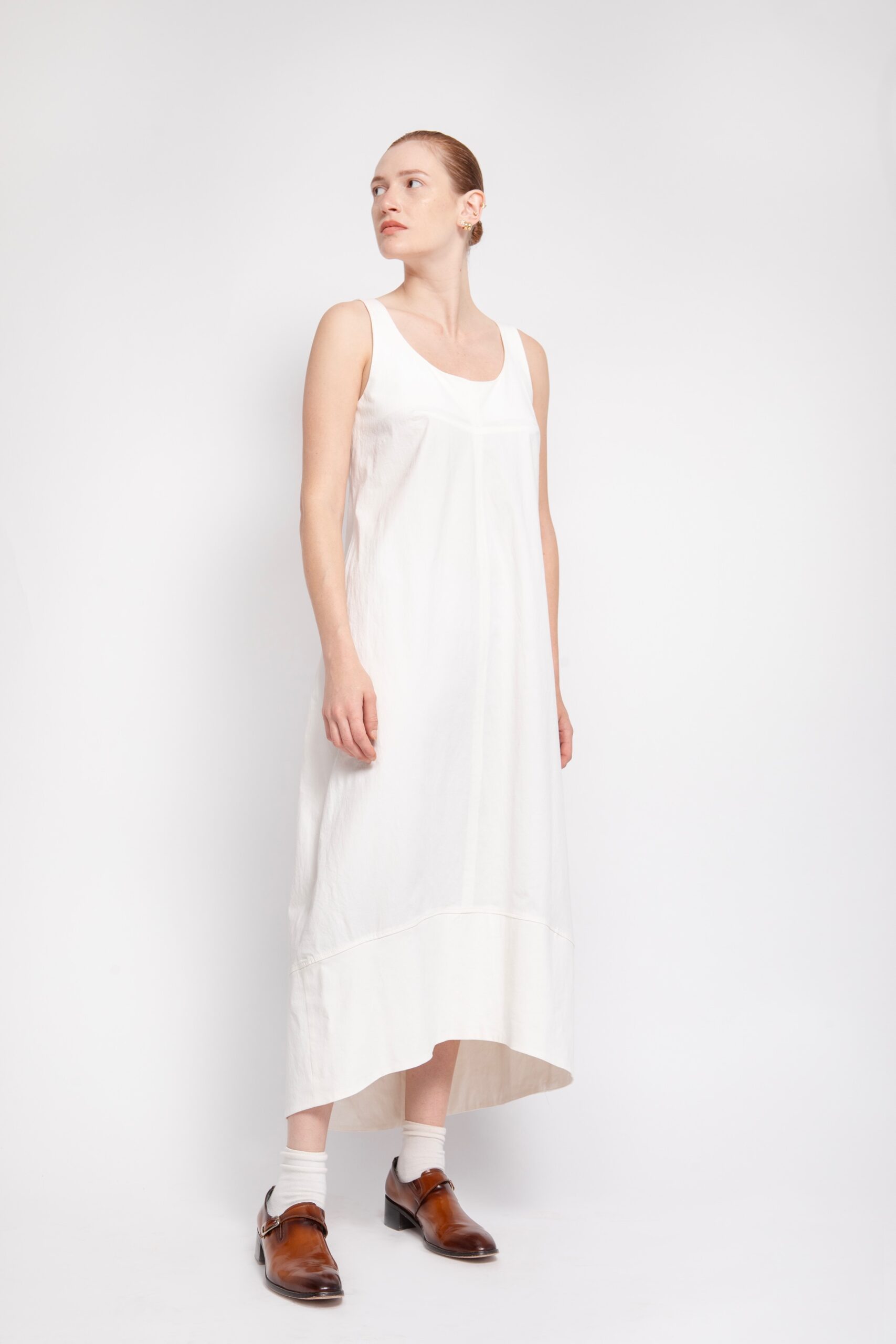 שמלה מבד ג'ינס לבן, ללא שרוולים