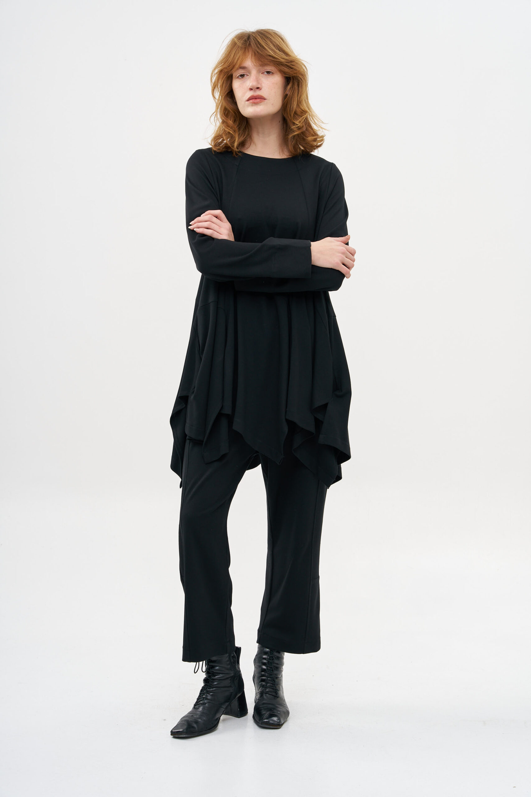 טוניקה ארוכה, עם חיתוכים אסימטריים, בגזרה נשית המלווה את הגוף
