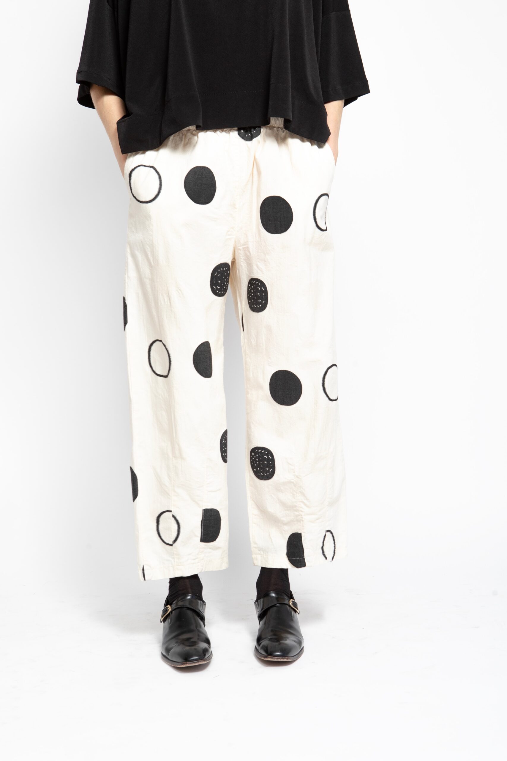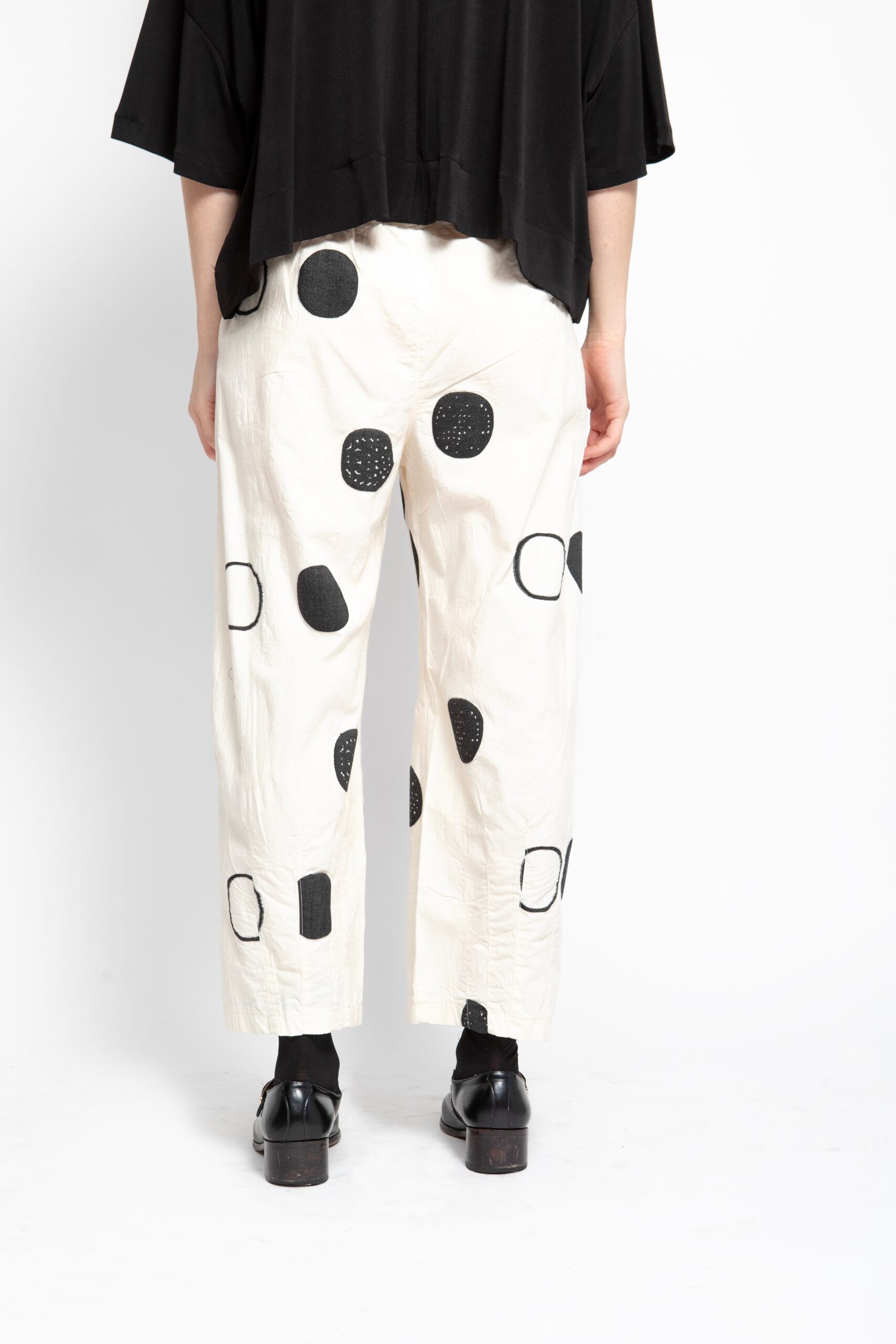 מכנסיים מבד כותנה טבעי, בשילוב ג'קרד נקודות