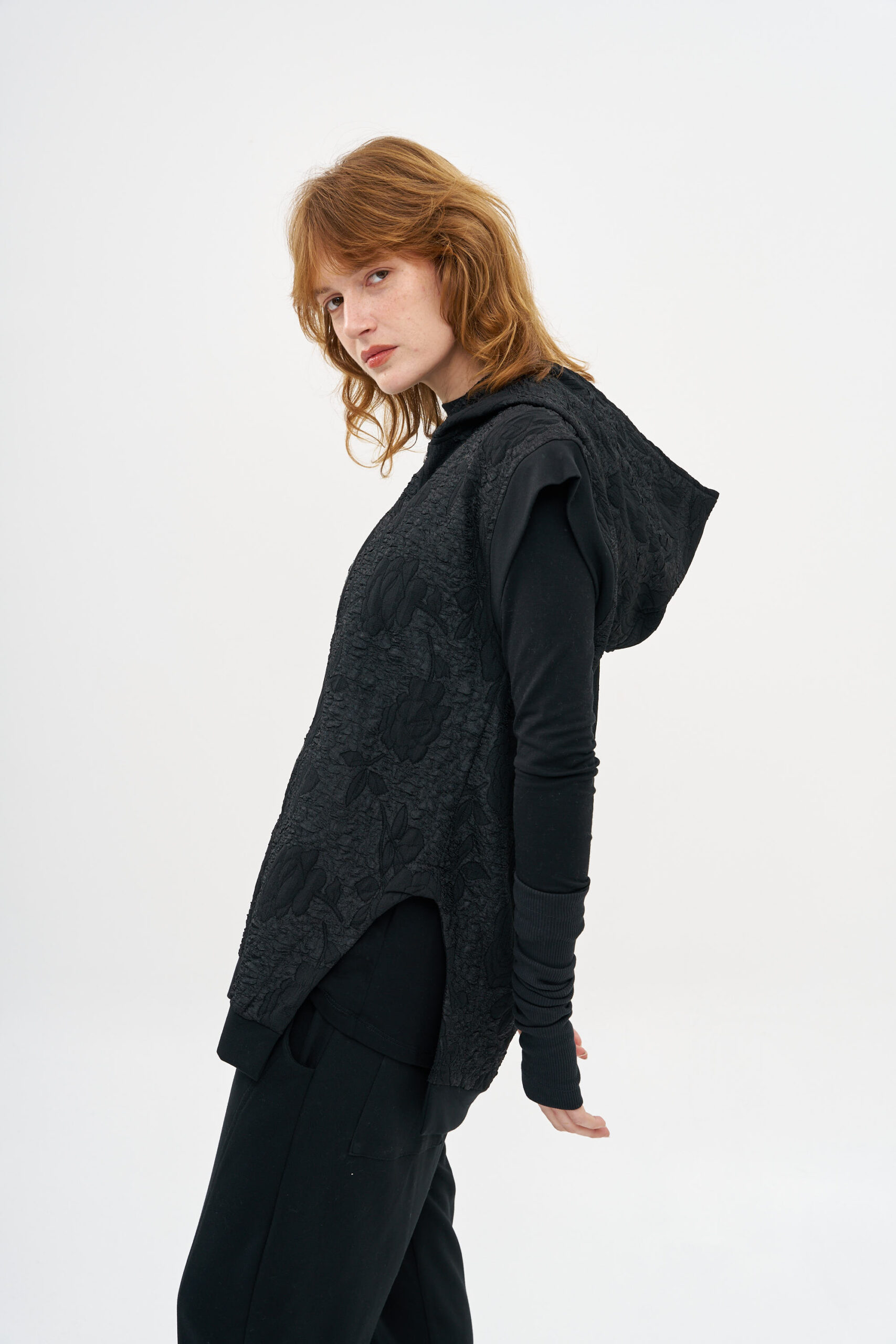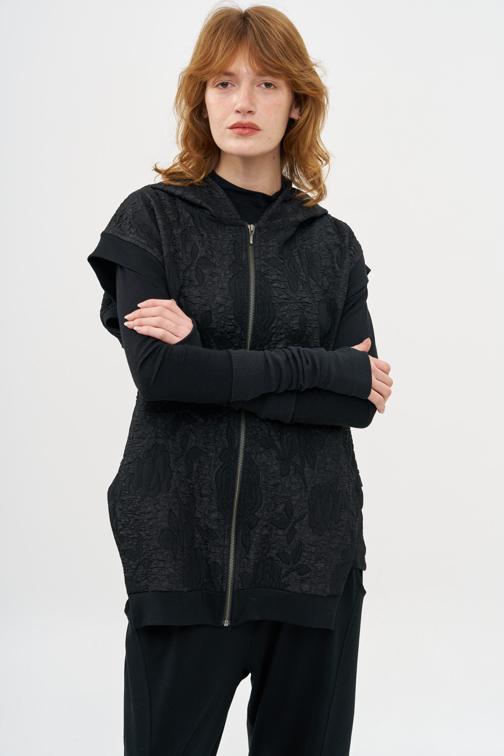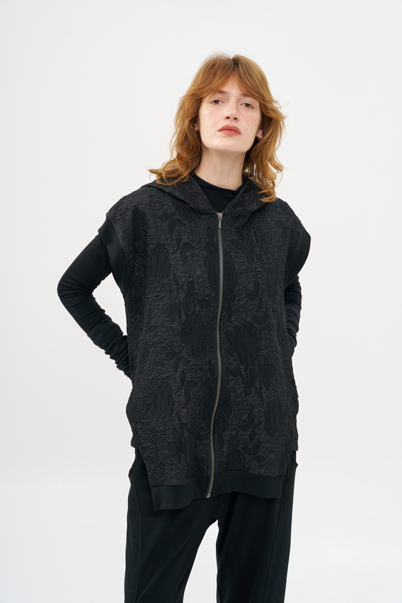 קרדיגן וסט מבד אריג ברוקד עם סגירת רוכסן