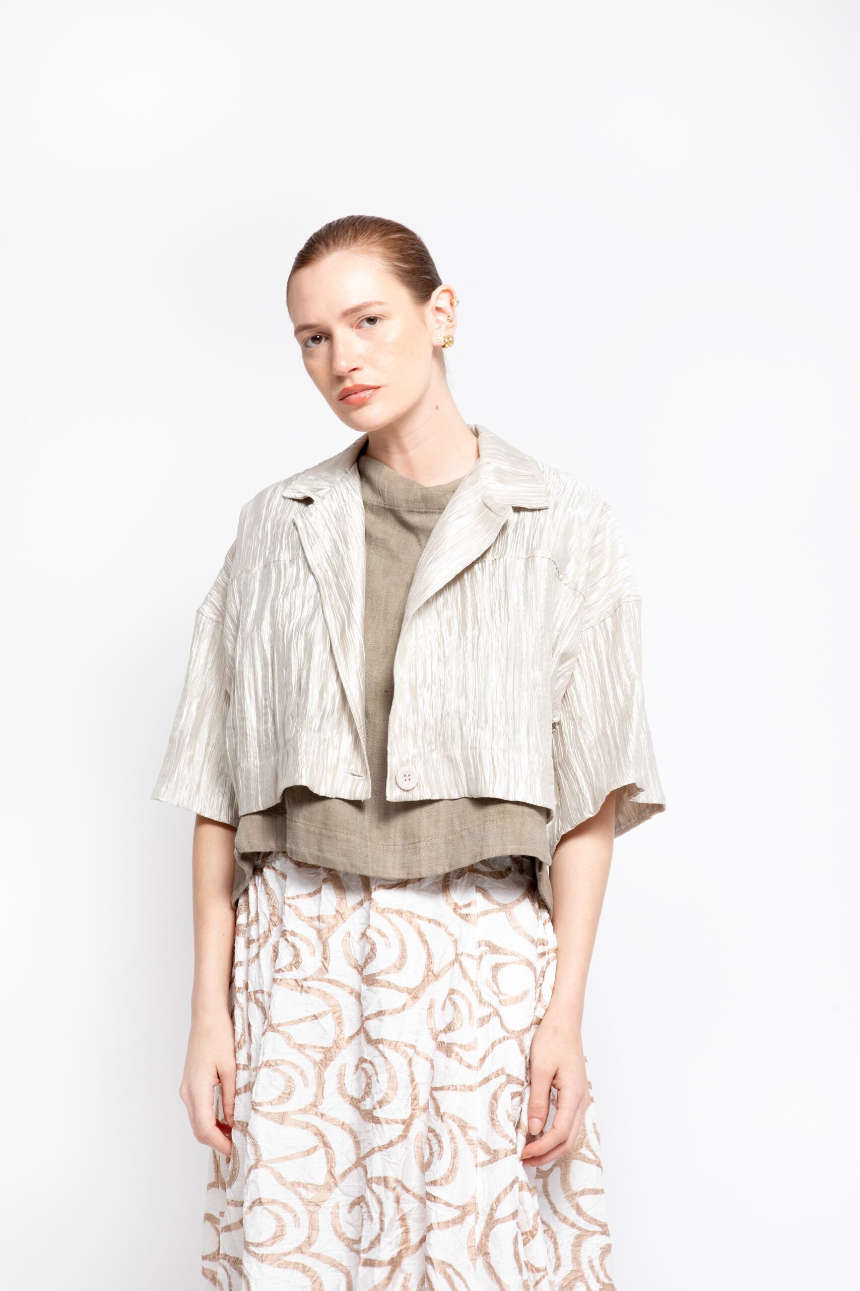 ג'קט באורך מותן, עם סגירת כפתור, בגזרה המלווה את הגוף בצורה מחמיאה
