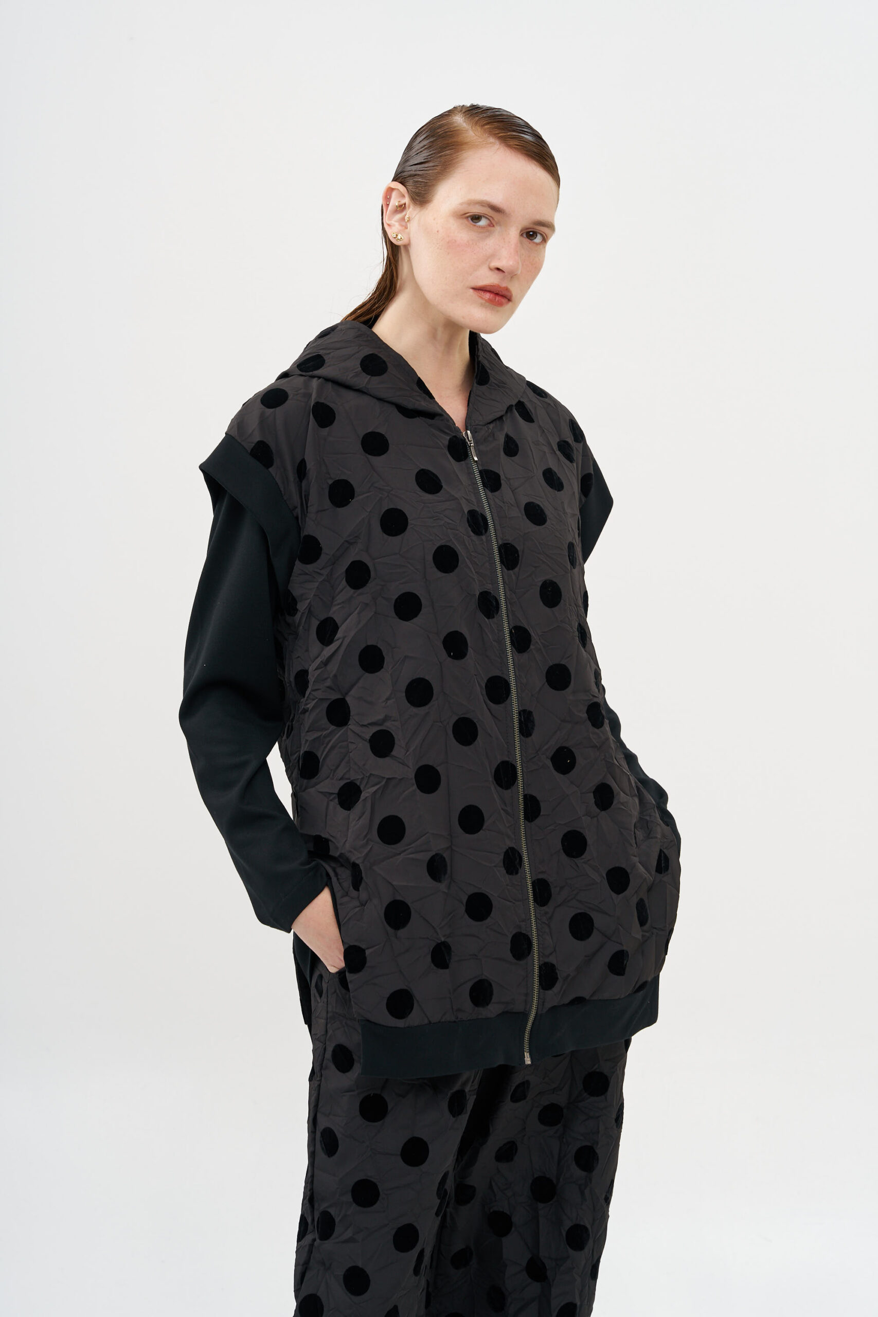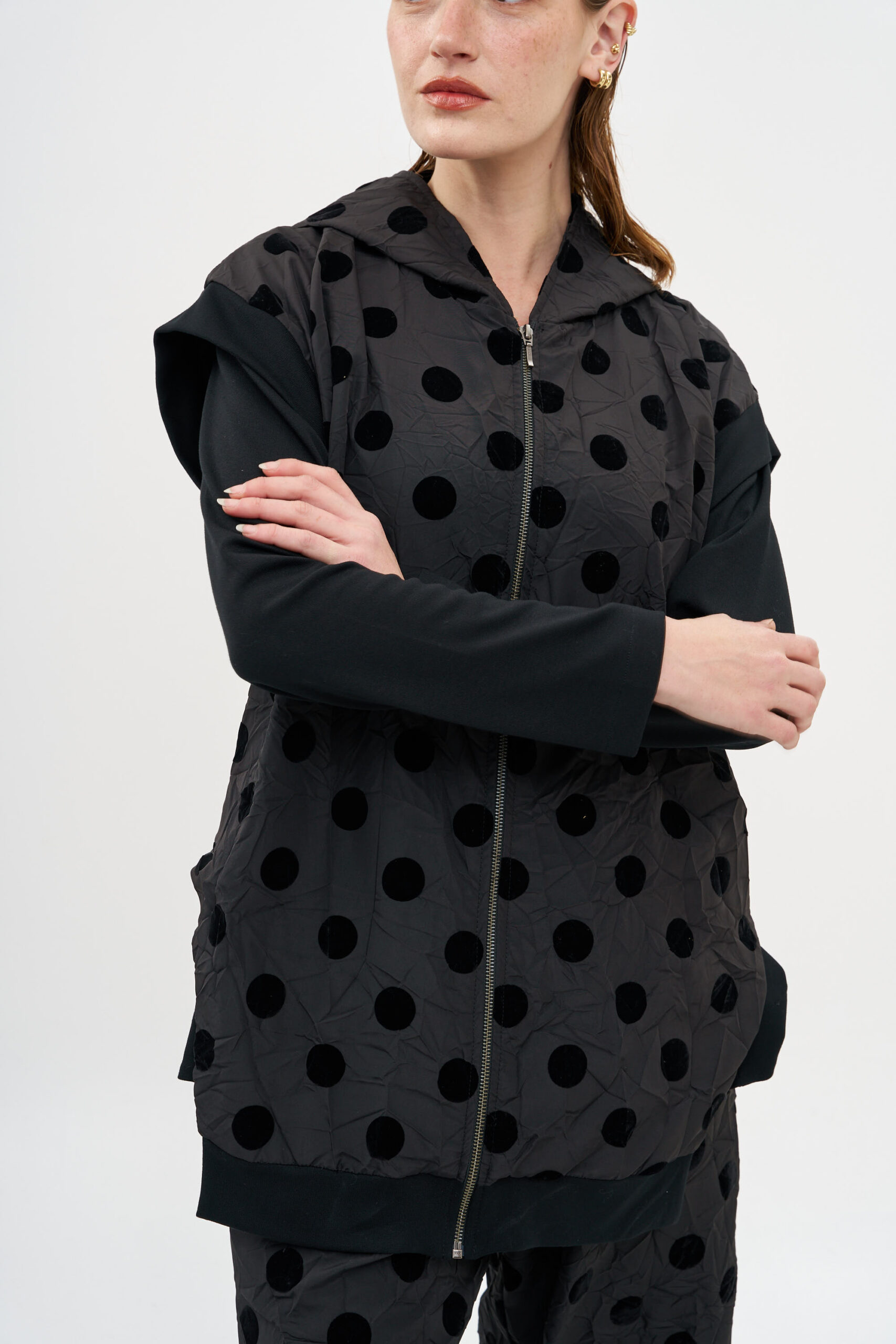 קרדיגן וסט קפושון מבד טפט נקודות, בשילוב ג'רסי