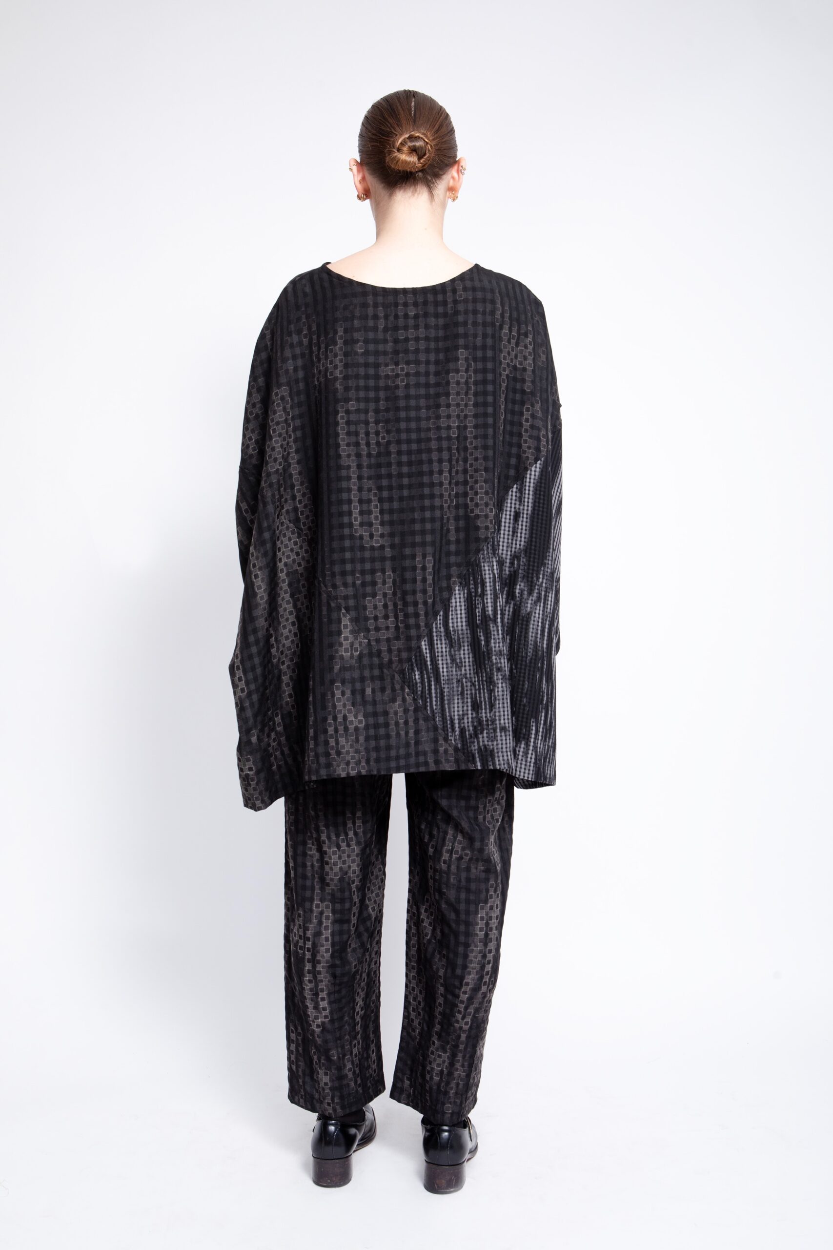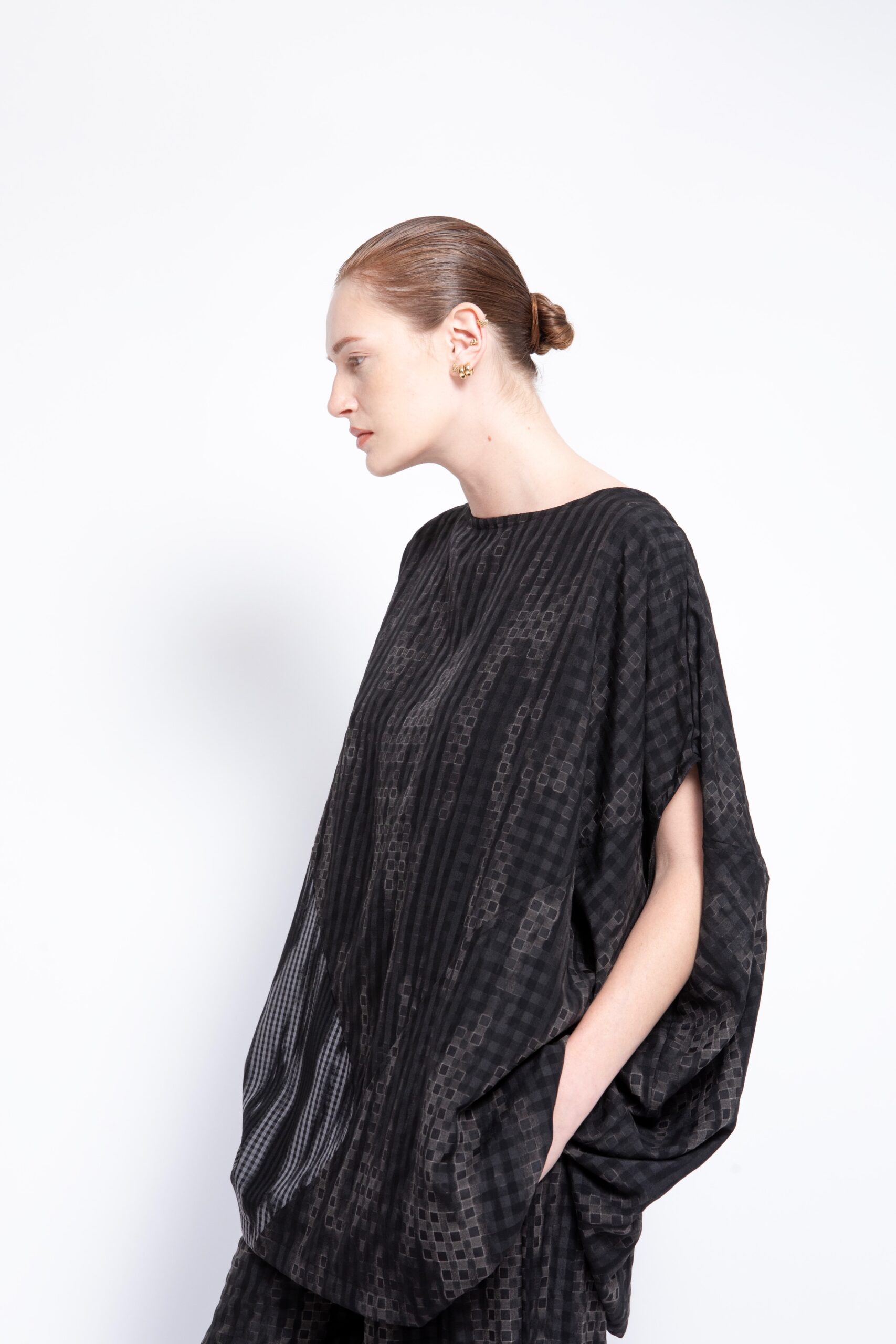 טוניקה מלאת בד, עם שרוולים נשפכים וטקסטורה משולבת