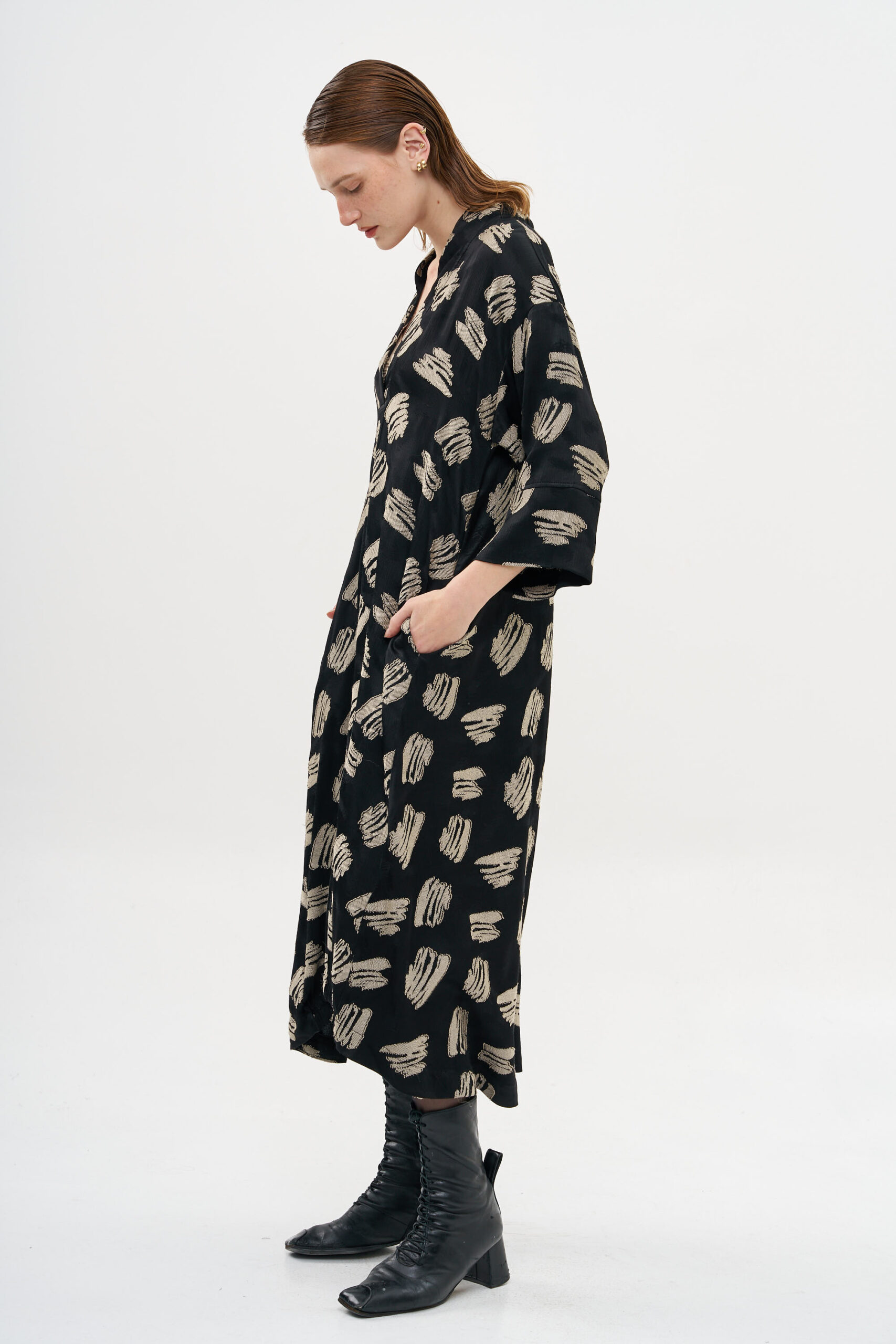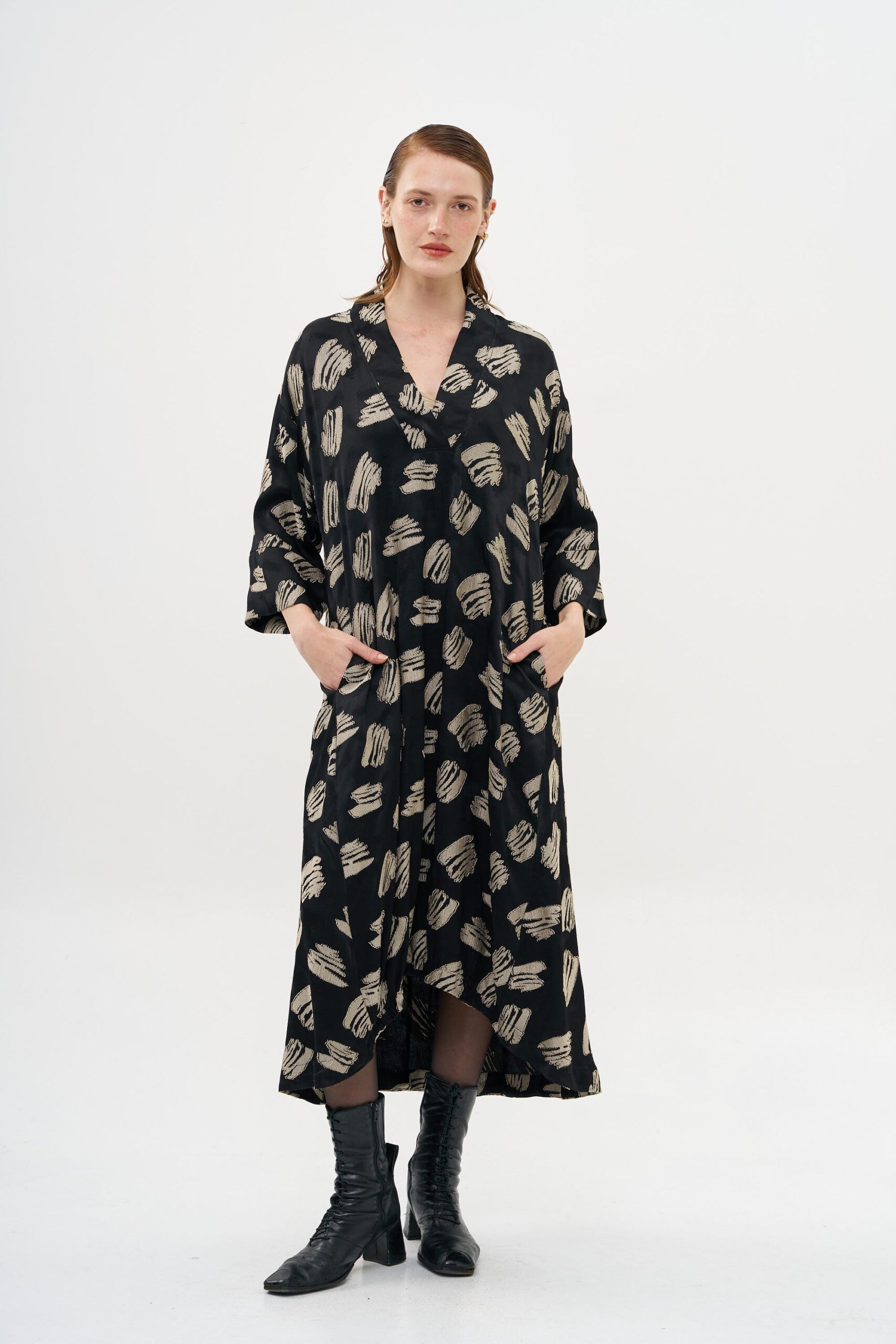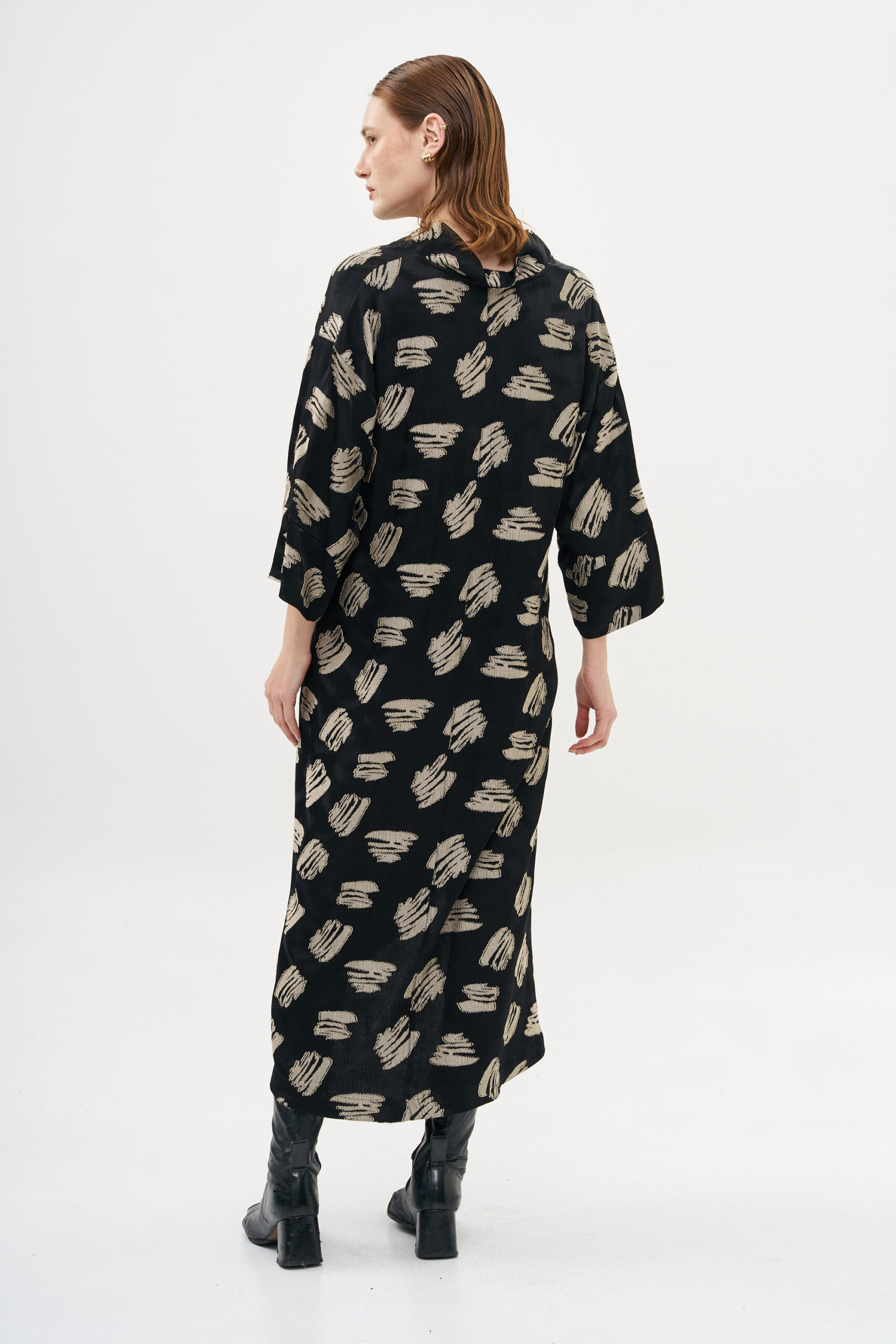 שמלה מבד סאטן מודפס עם שרוולים באורך 3/4