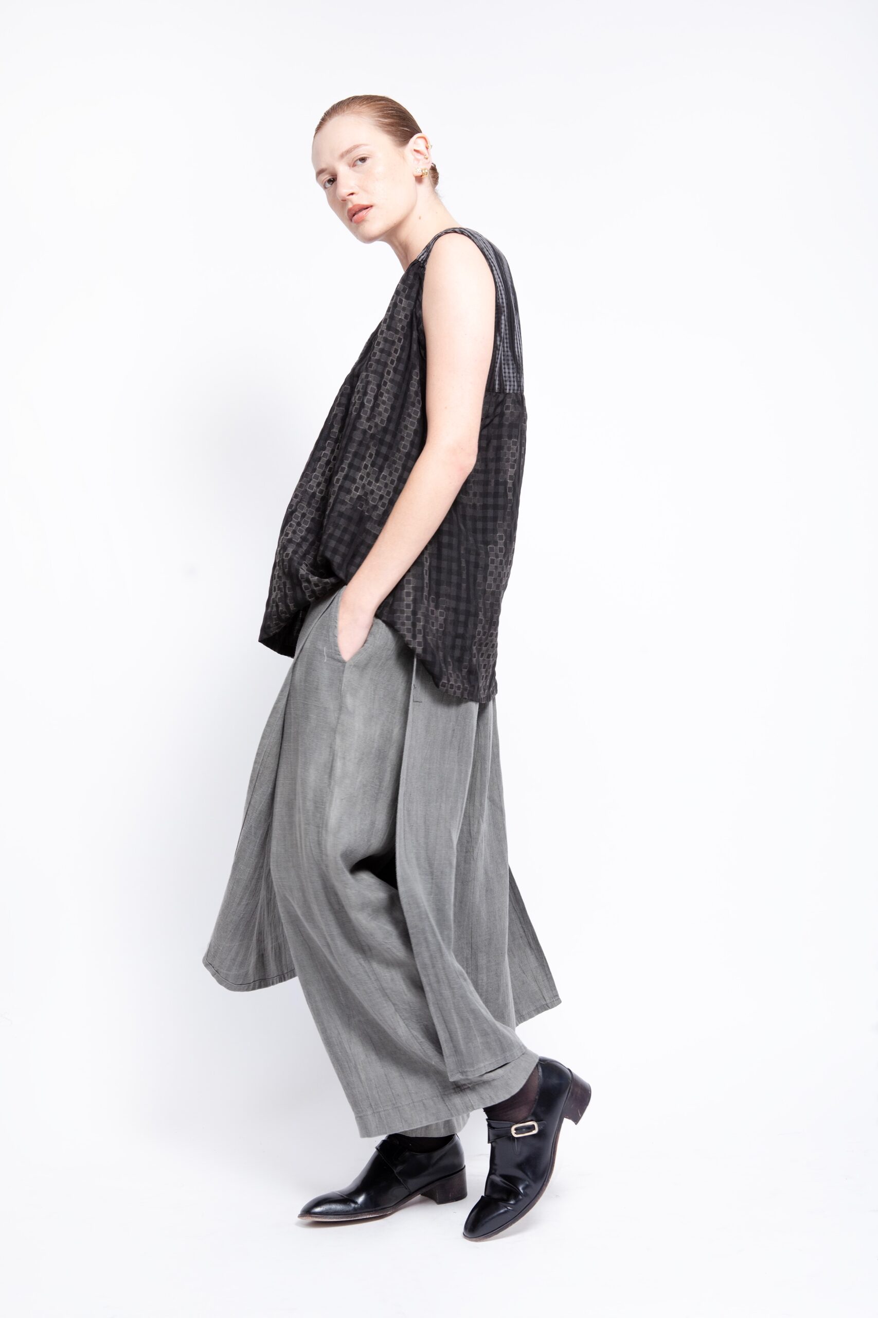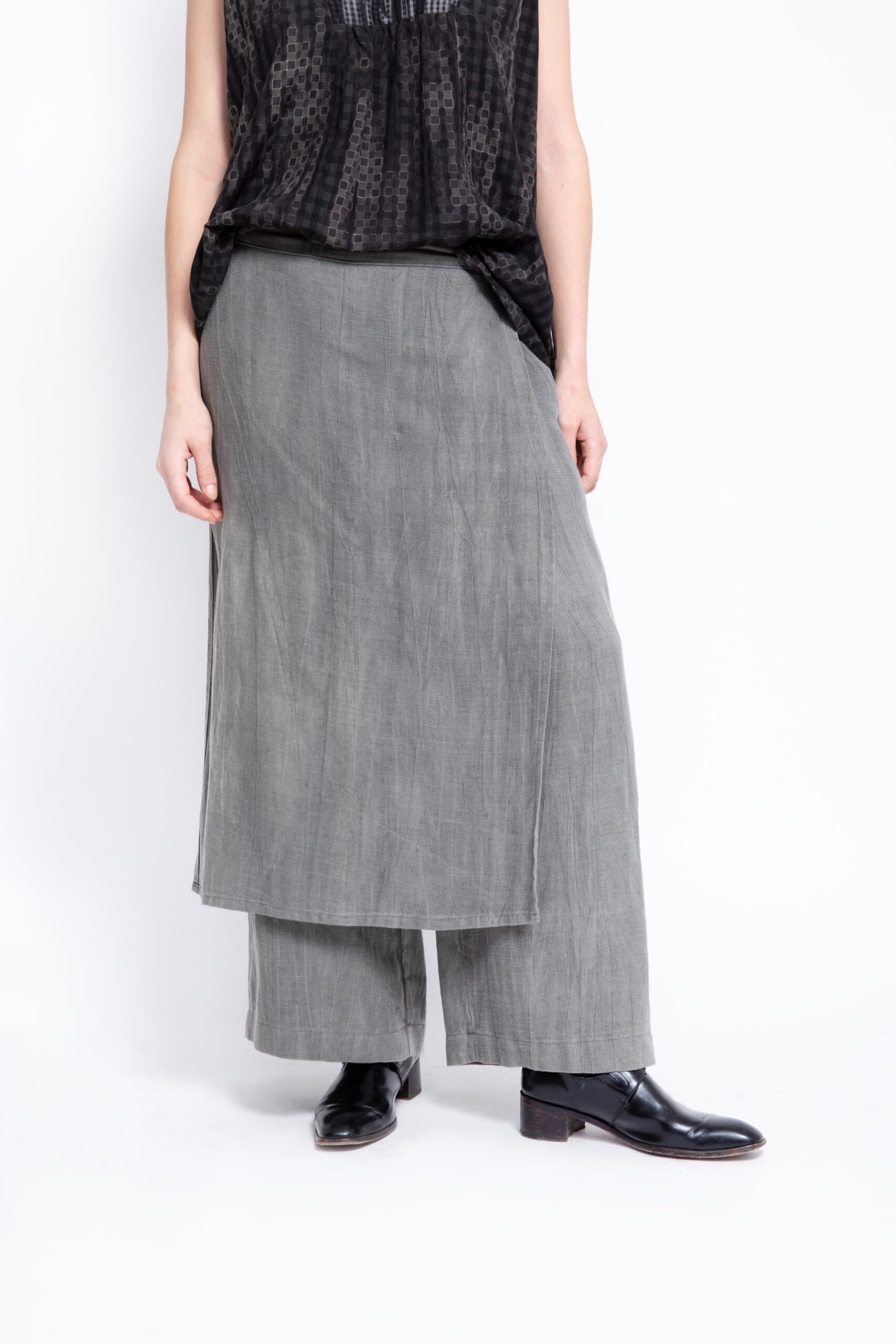 מכנסי חצאית מבד פשתן ויסקוזה רחוץ