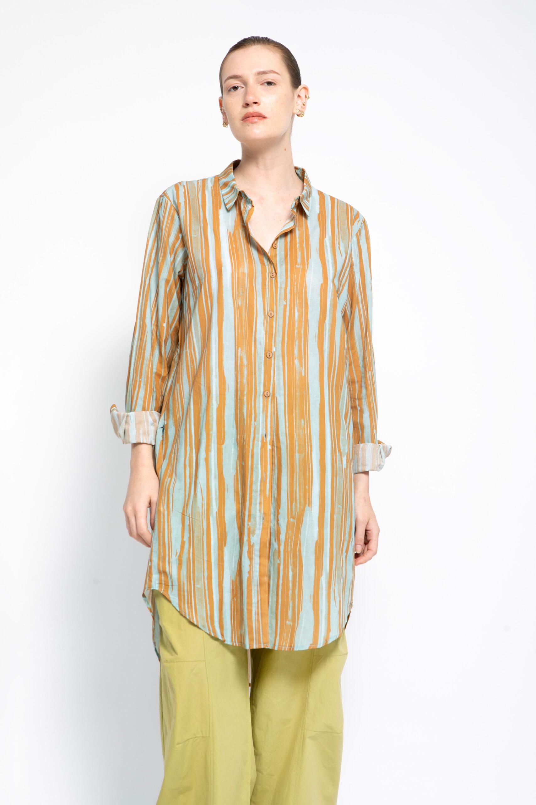 חולצה מבד כותנה מודפס, בפסי תבלינים